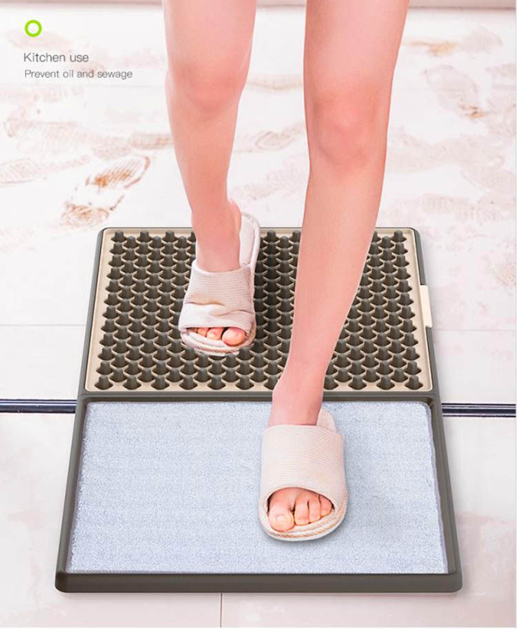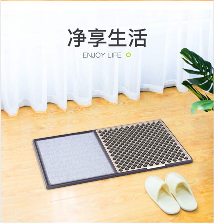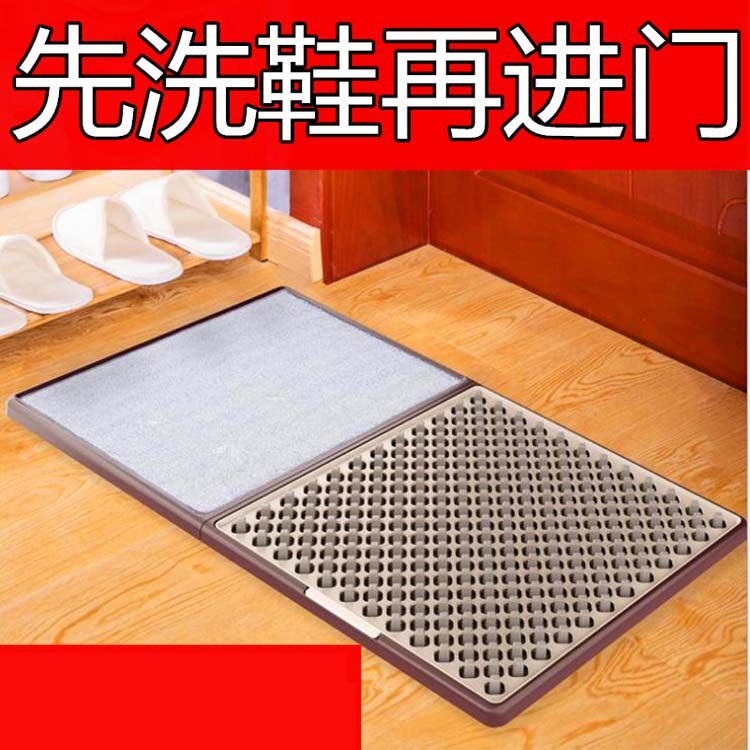 [原理:使用过程中,刷棉有水分渗出,把鞋底灰尘溶解并清洗,然后再踩到吸水垫上把鞋底的水分吸干即可。 刷棉上的水分 把鞋底弄湿 鞋底的尘土就掉落到水里了 然后把鞋底再在吸水地毯上吸干水分 ] [。]