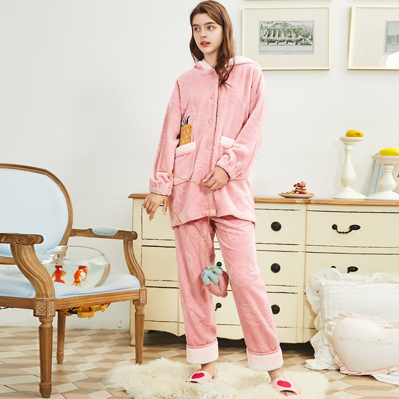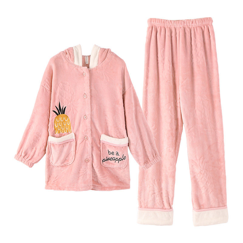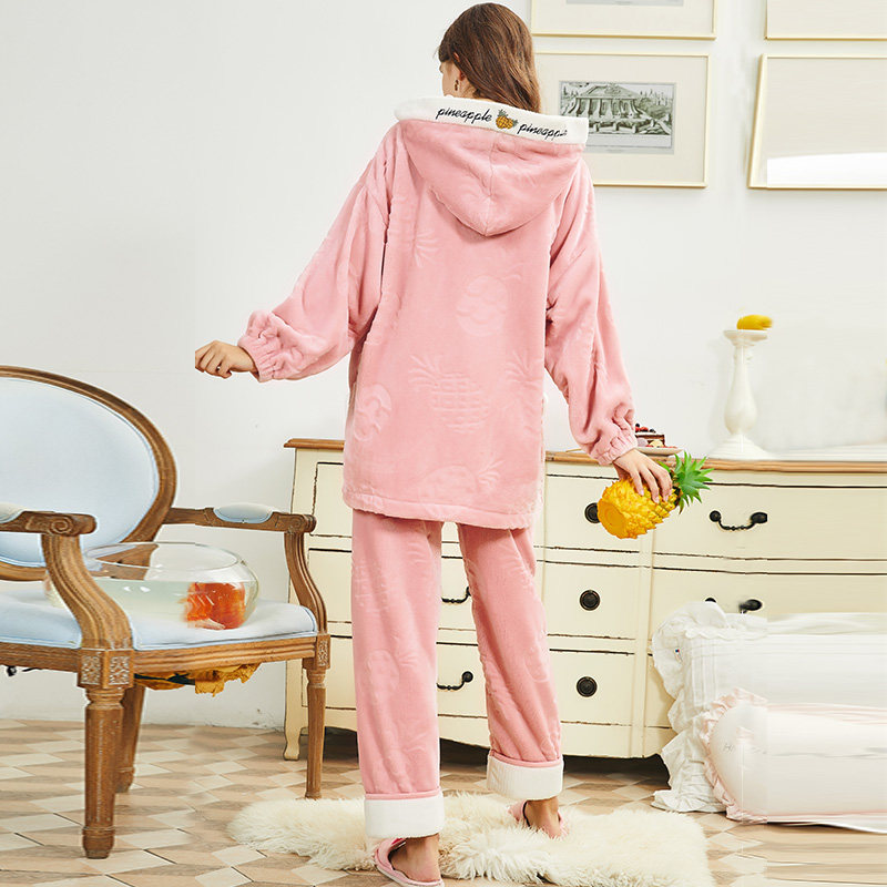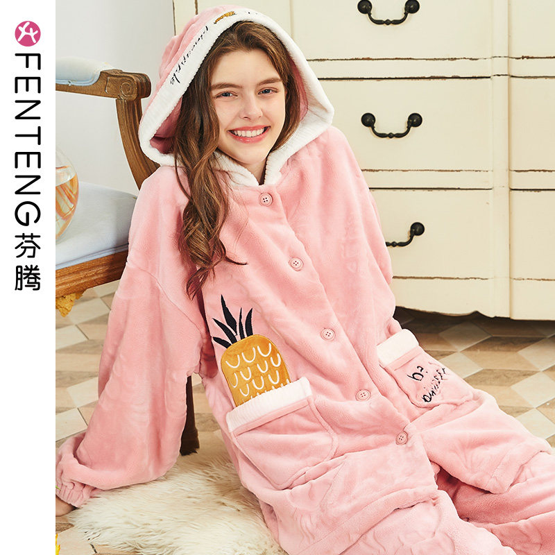 芬腾 Демисезонная коралловая бархатная милая пижама, фланелевый утепленный комплект с капюшоном, большой размер