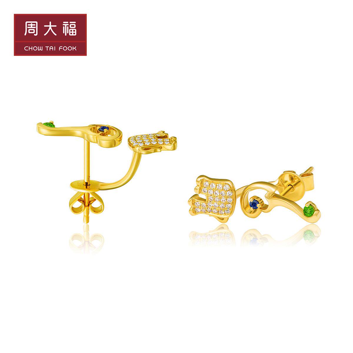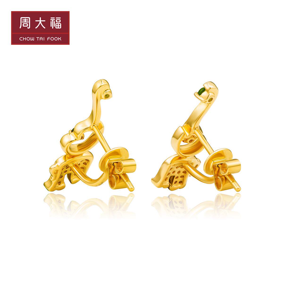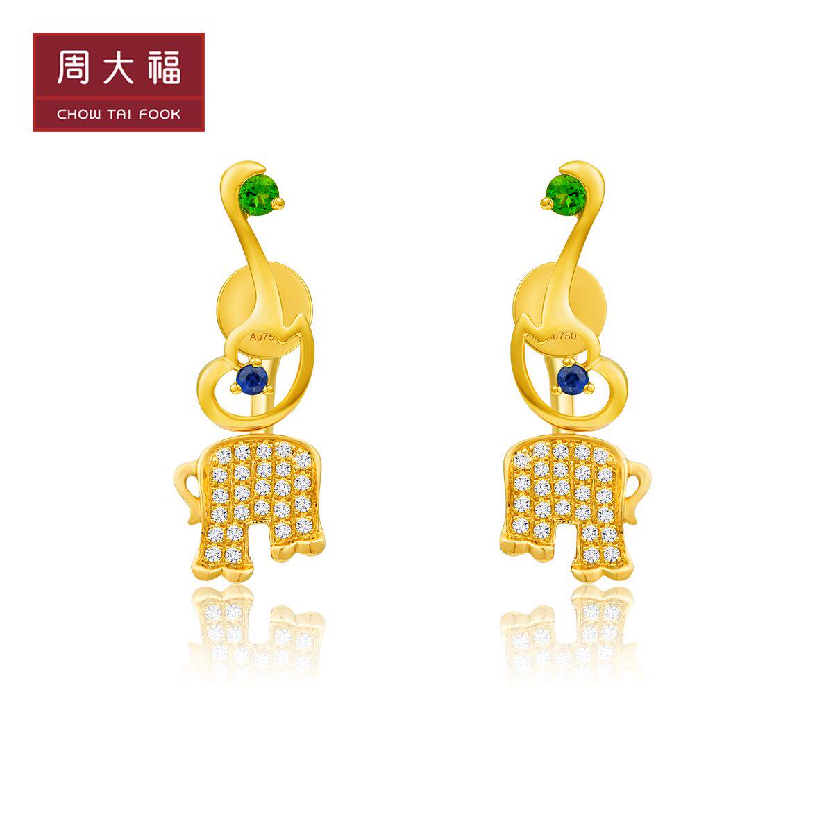 周大福 Слон 18K золотые диопсидные серьги с бриллиантами v115539 Подарок