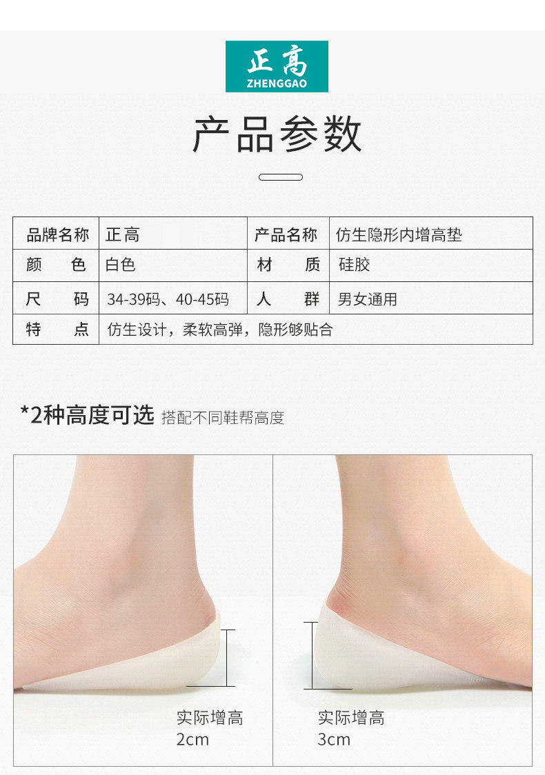 正高 Мужские силиконовые невидимые стельки для увеличения роста, полустельки