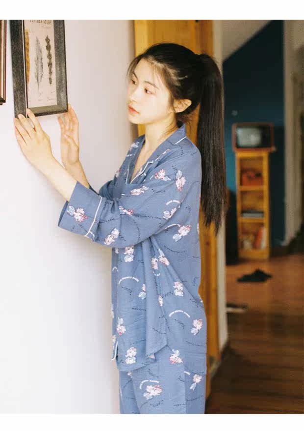 Осенняя тонкая пижама, лонгслив, комплект, цветочные композиции, большой размер