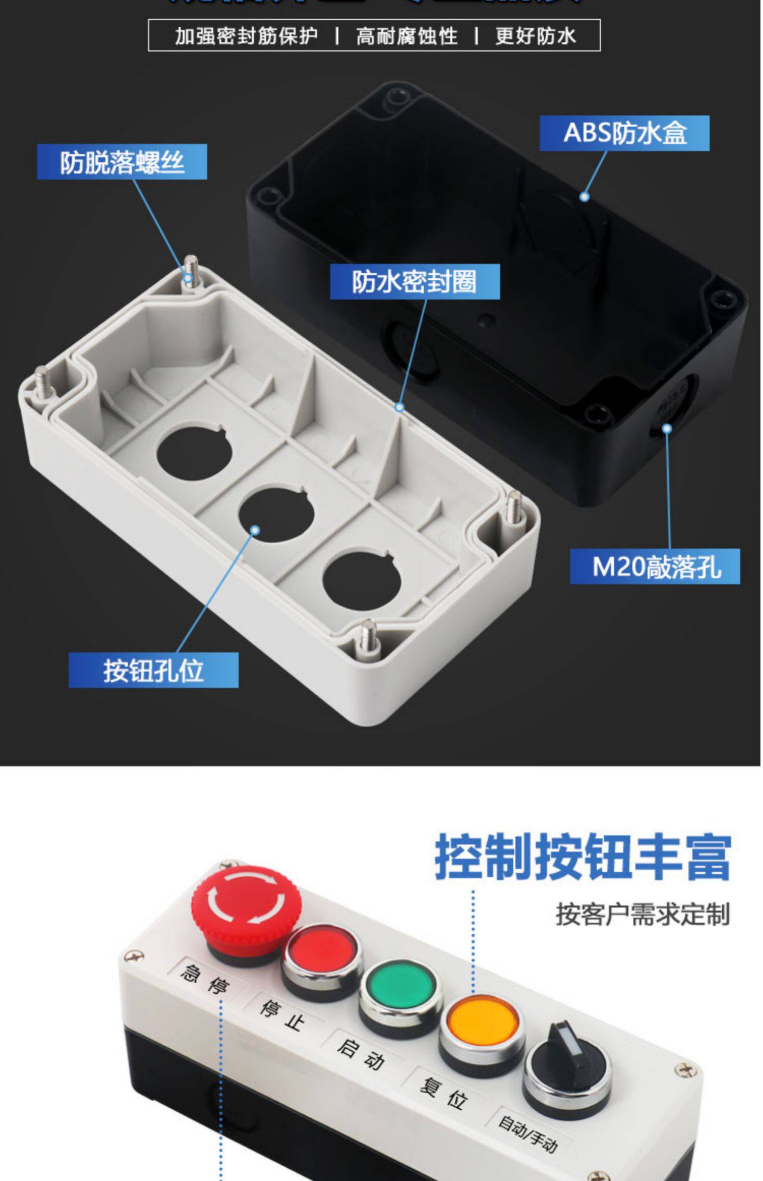 Водонепроницаемая кнопка, переключатель, пластиковая индикаторная лампа, коробка, 22мм
