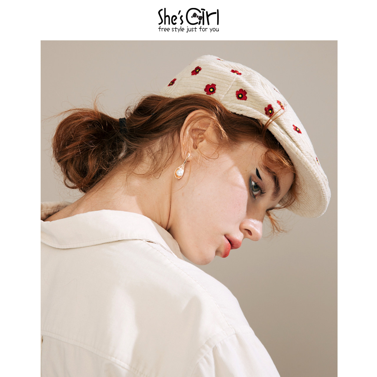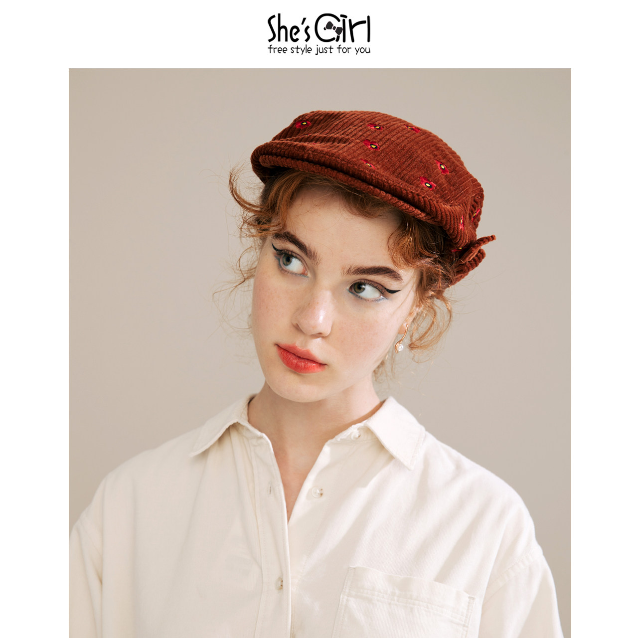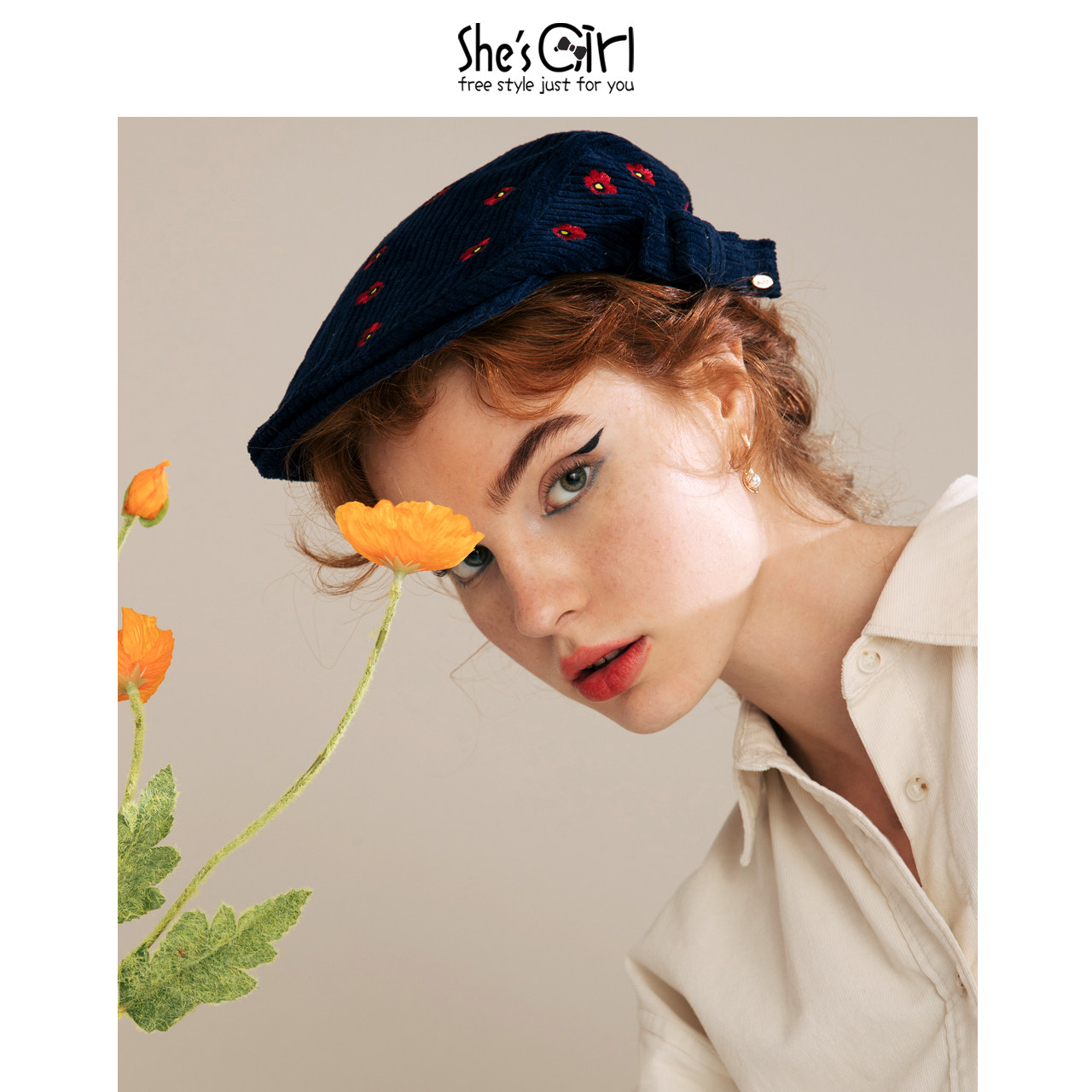 Shesgirls, Qianzi Original Design Embroidery Flowers Литературная ретро -газета Детская шляпа.