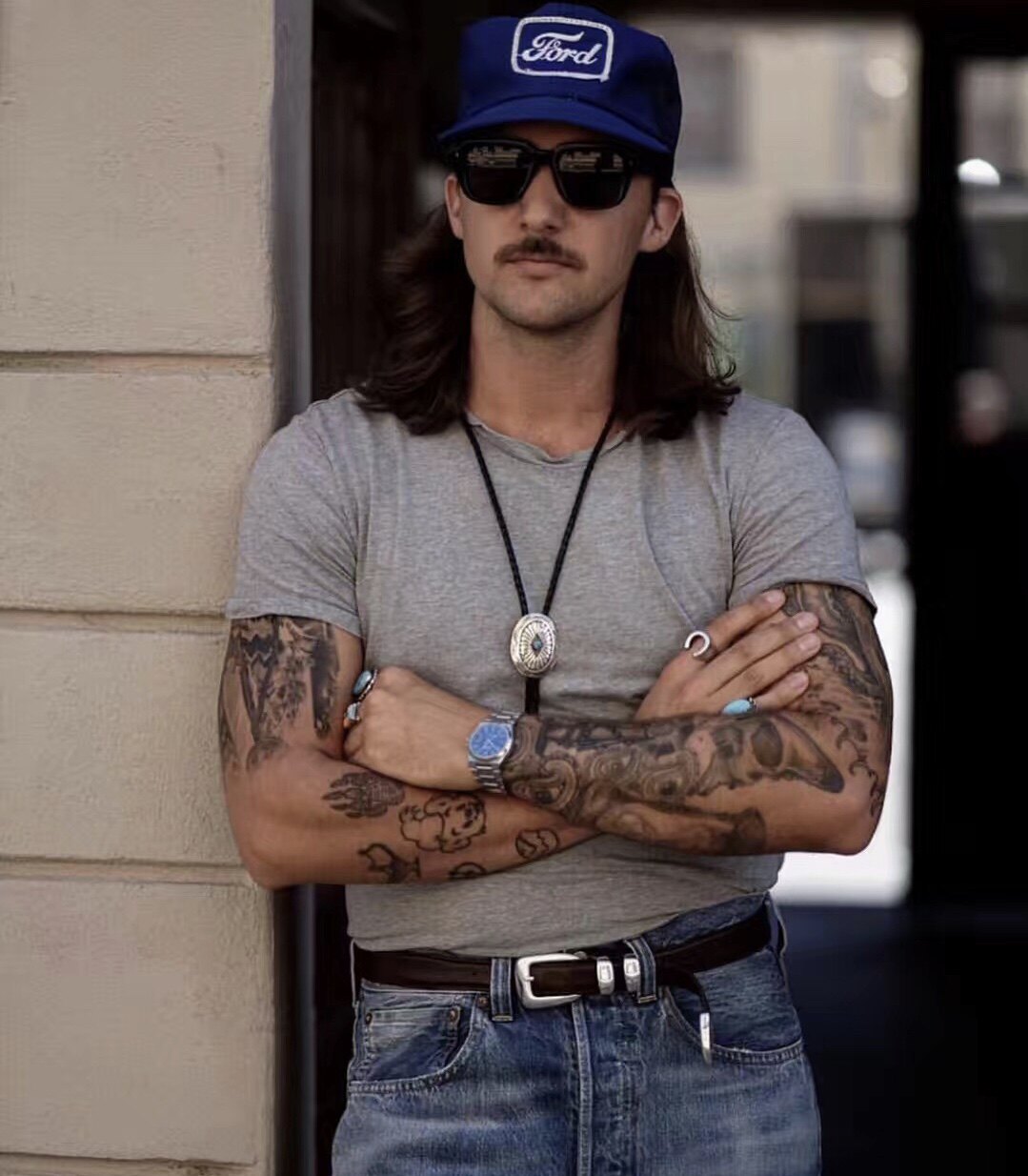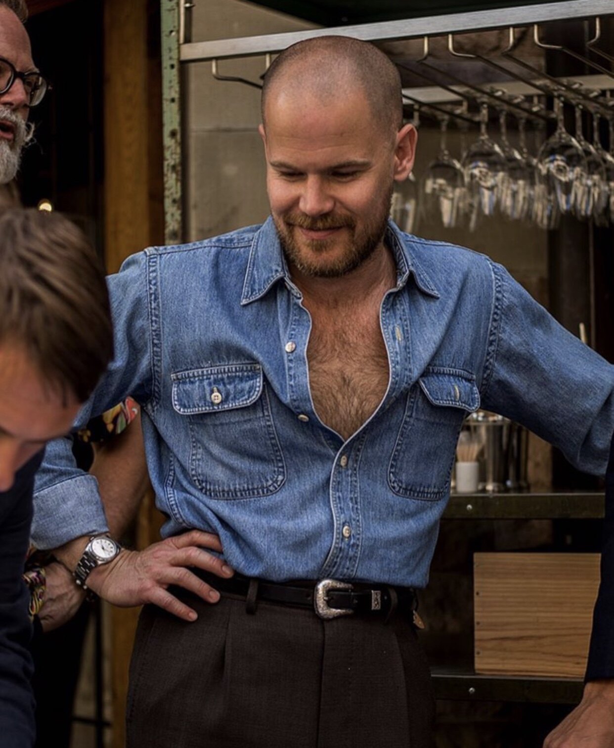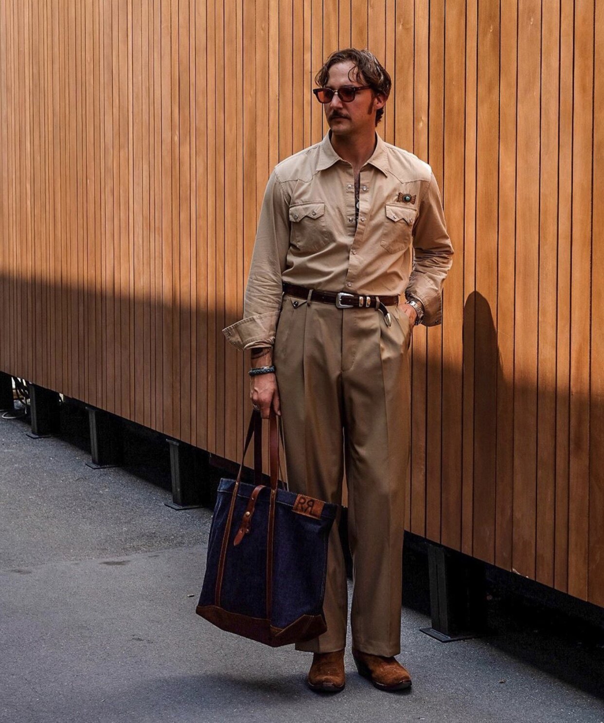 Джентльмен, джинсовая Есть разные стили и темперамент на модных высоких улицах,