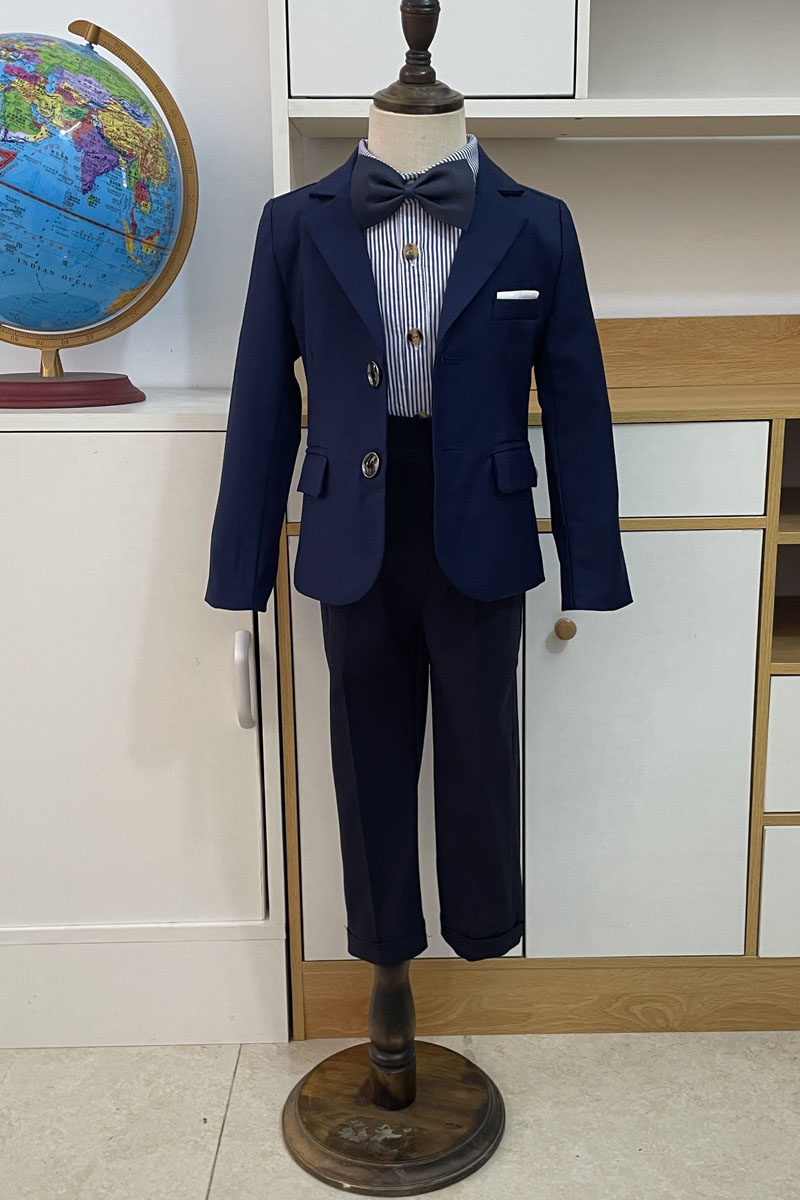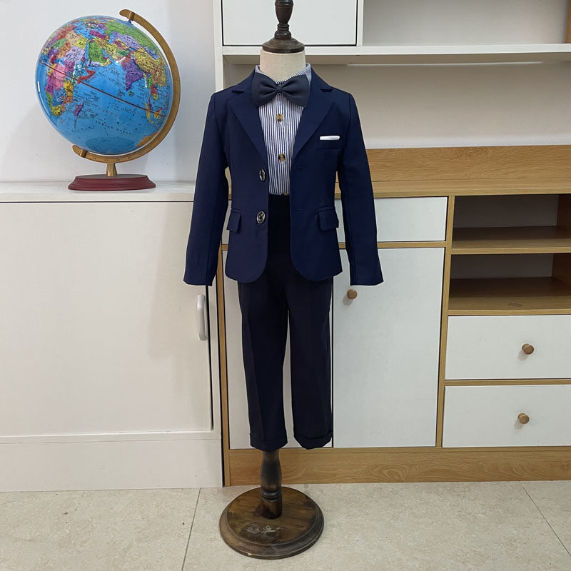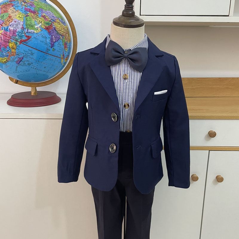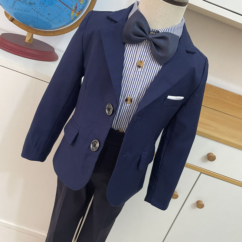 Темно-синий пиджак классического кроя для мальчиков, костюм, подходит для подростков, детская одежда