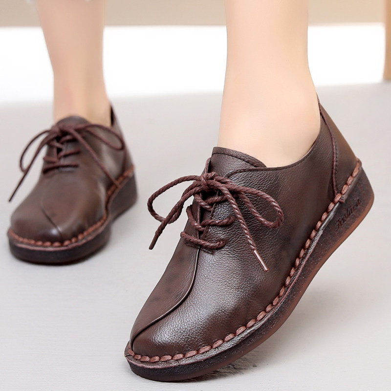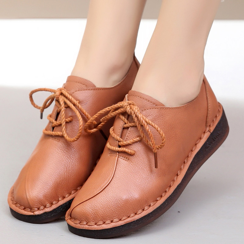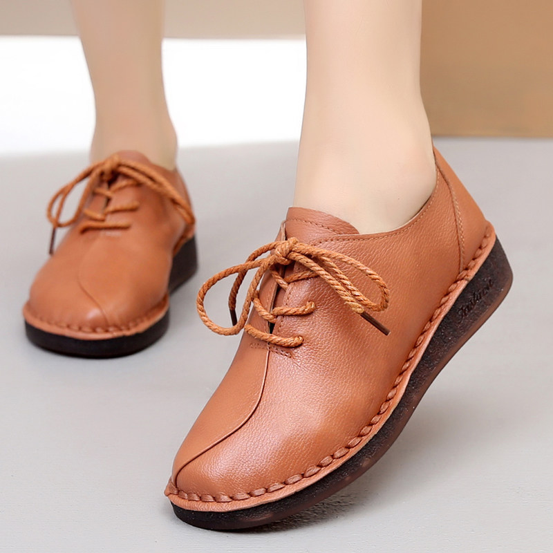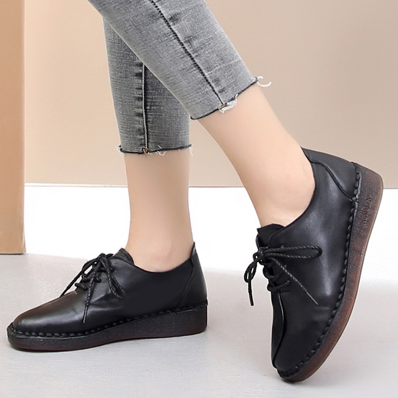 Обувь для кожаной обуви для матери, мягкая подошва, из натуральной кожи, осенняя, большой размер