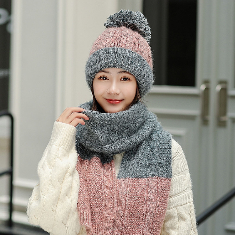 Зимняя шапка, шарф, милый удерживающий тепло модный шерстяной комплект, популярно в интернете, в корейском стиле