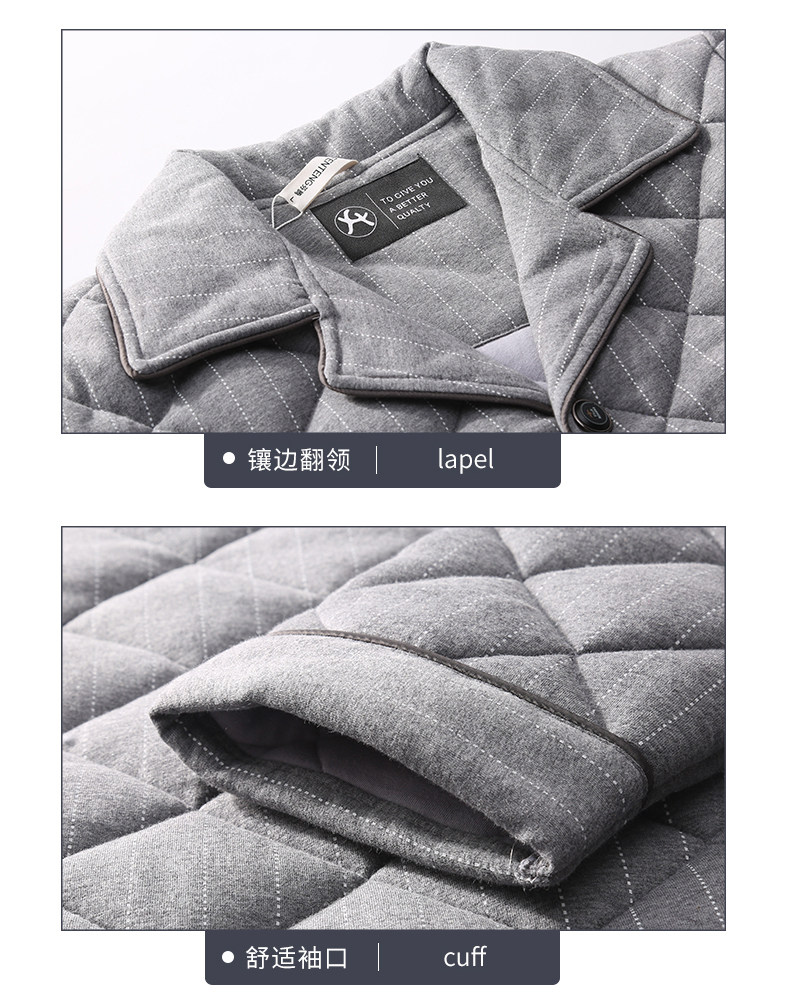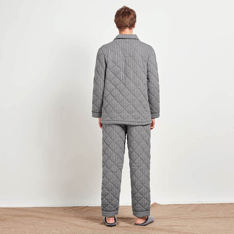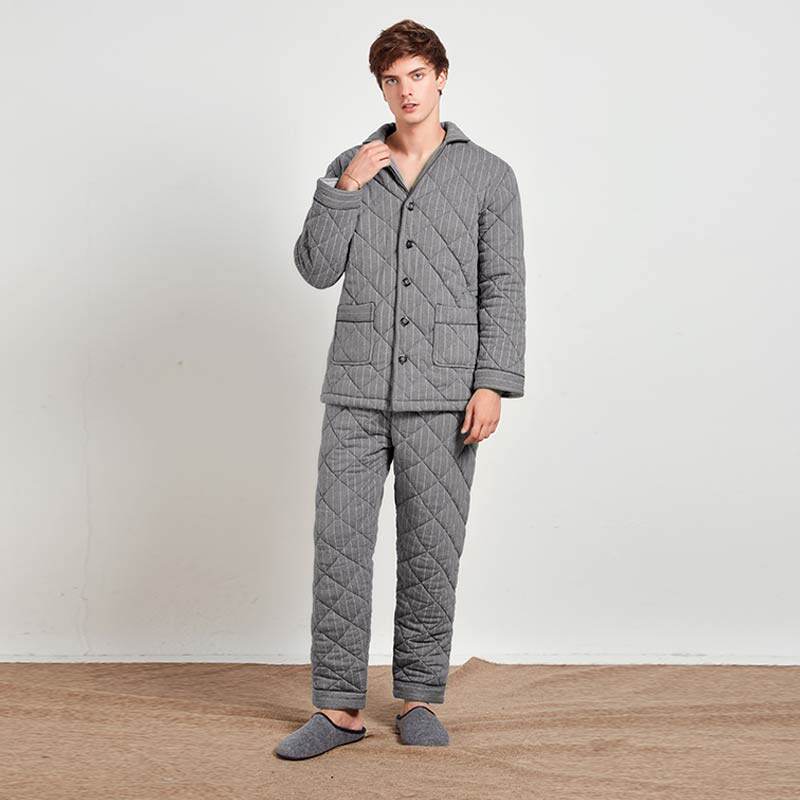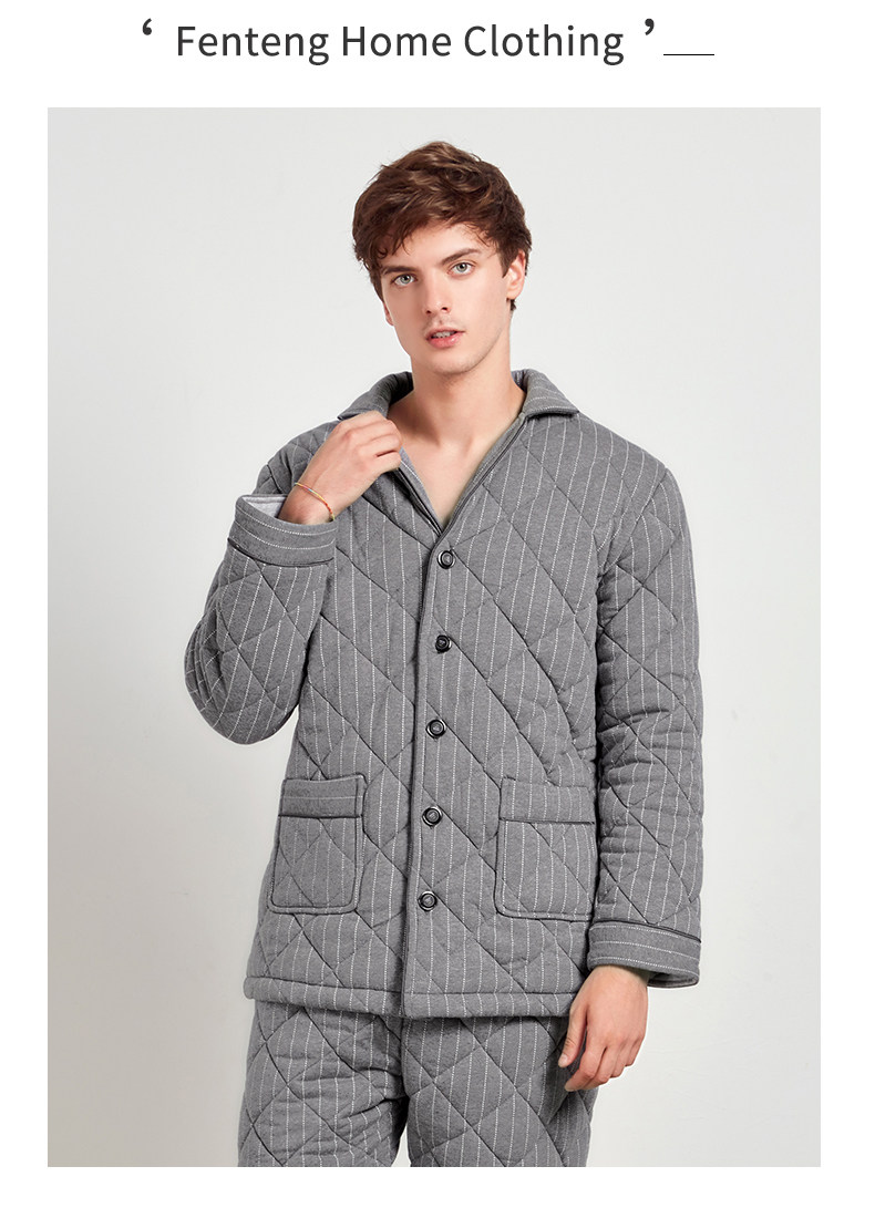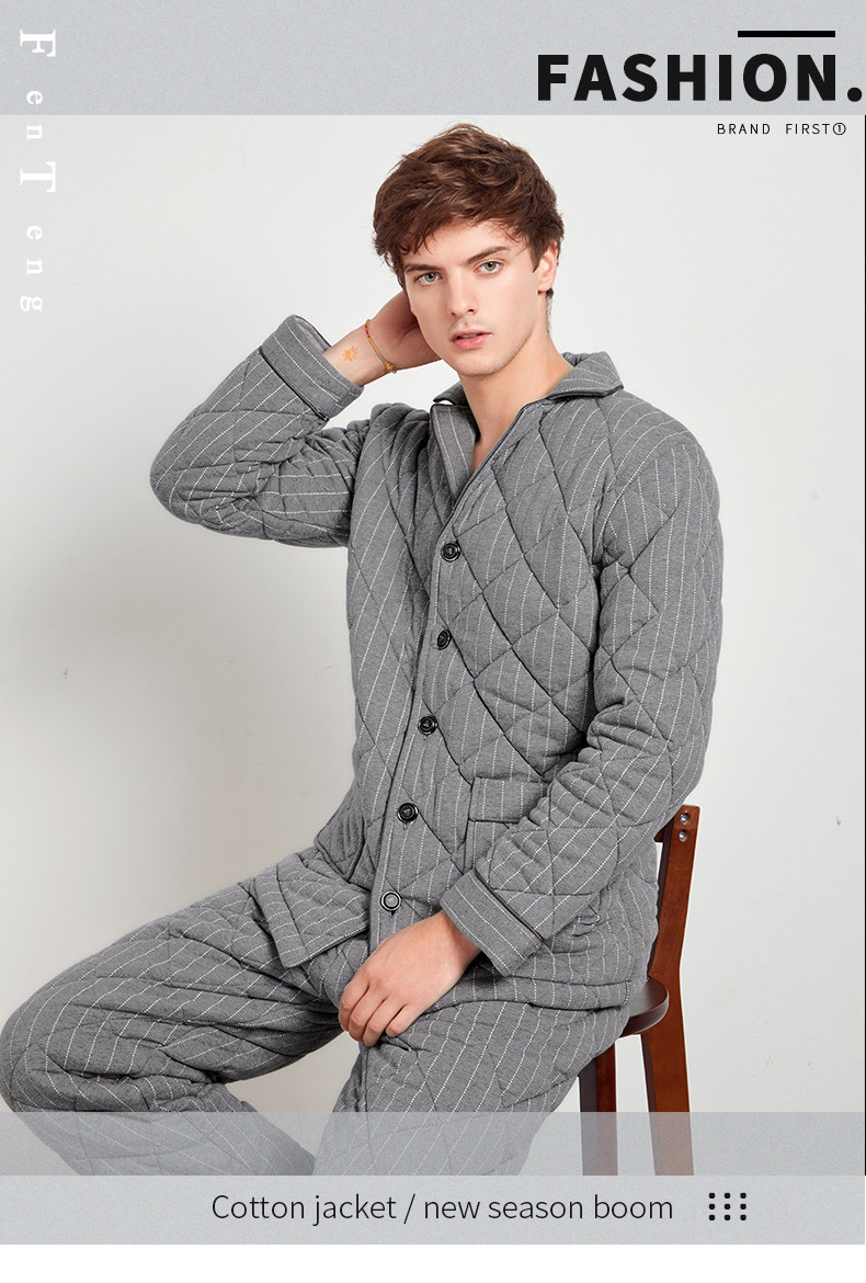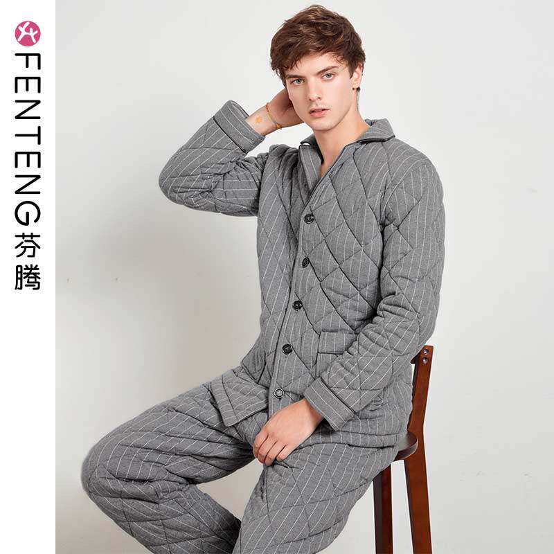 芬腾 Мужская трикотажная стеганая демисезонная пижама, флисовый ретро фланелевый комплект, большой размер