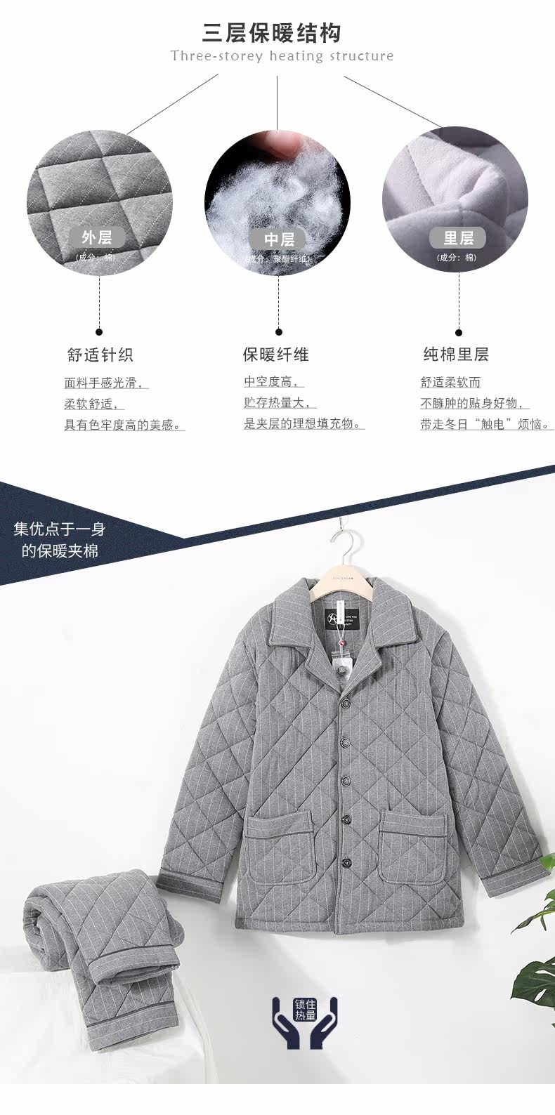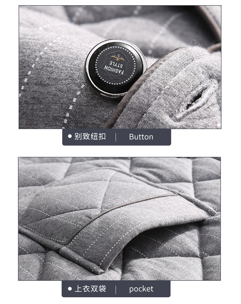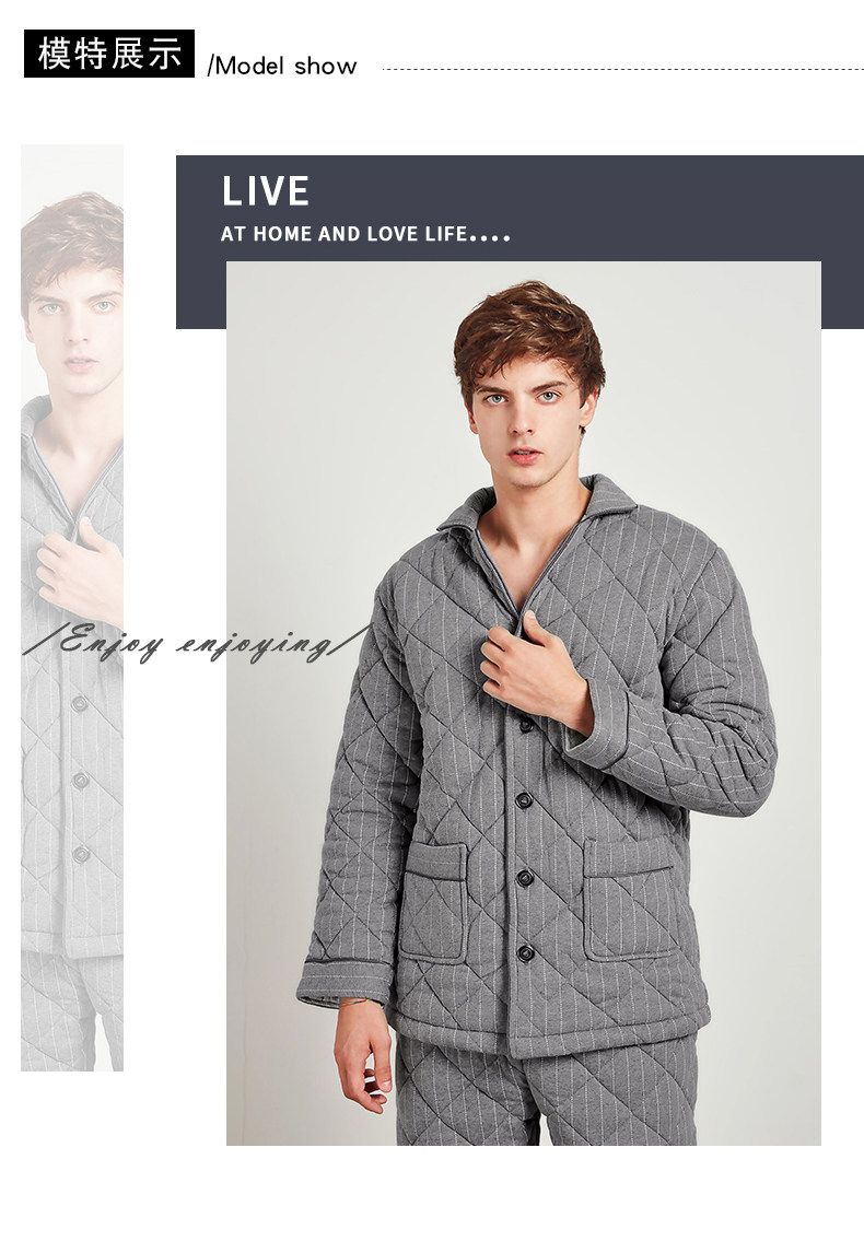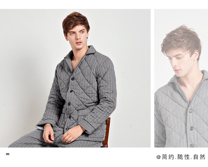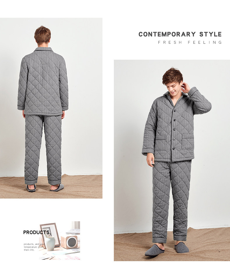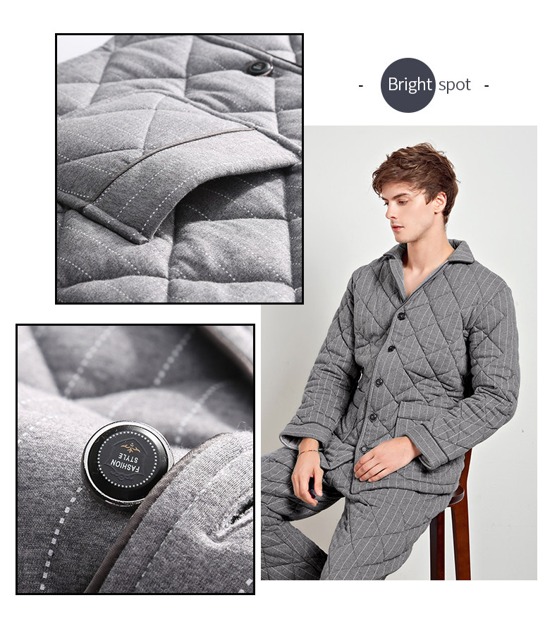 芬腾 Мужская трикотажная стеганая демисезонная пижама, флисовый ретро фланелевый комплект, большой размер