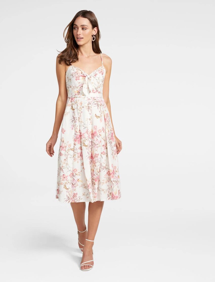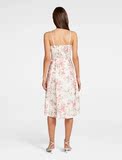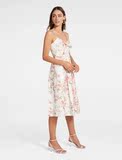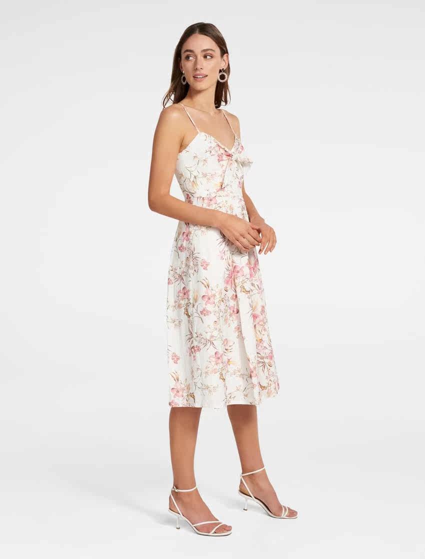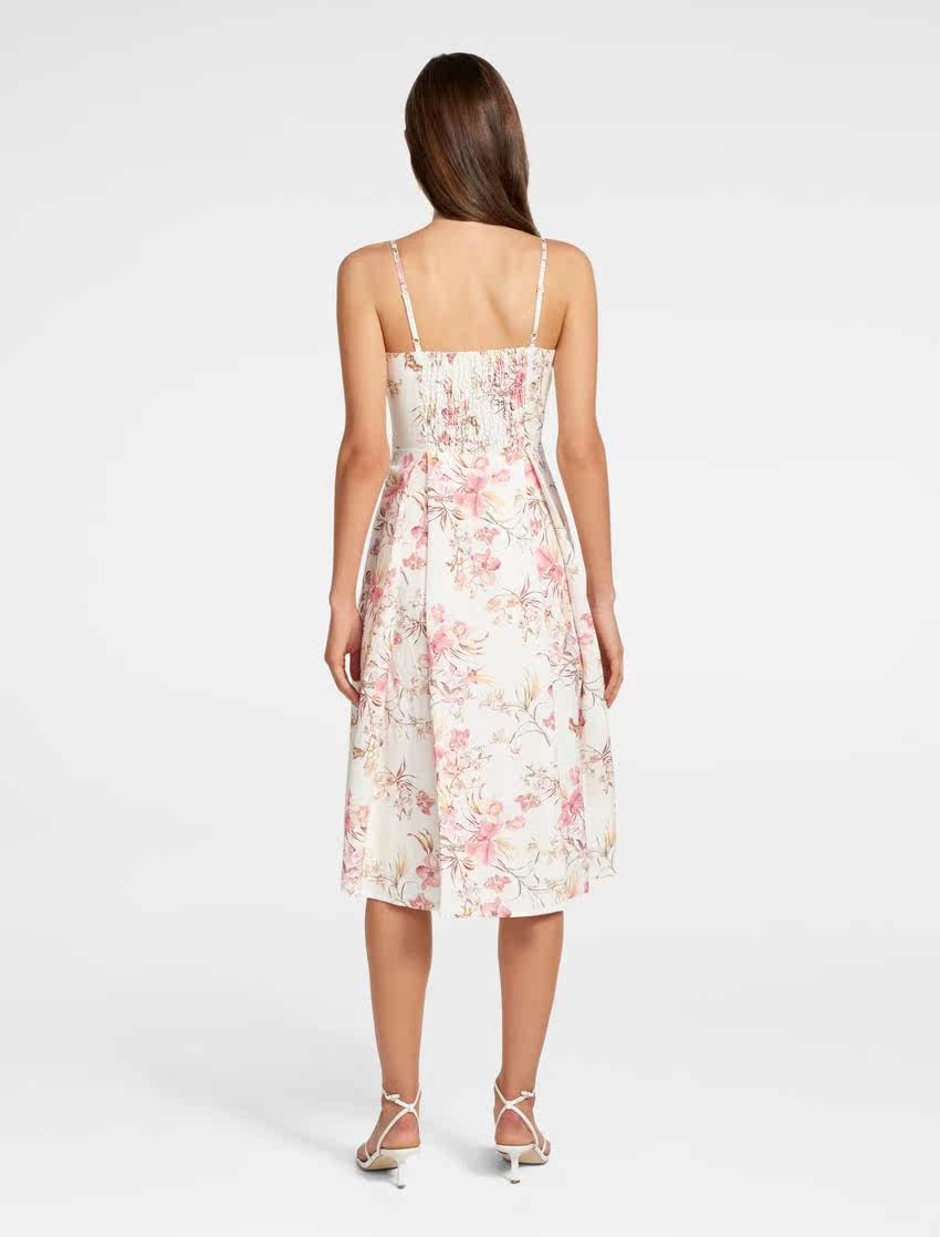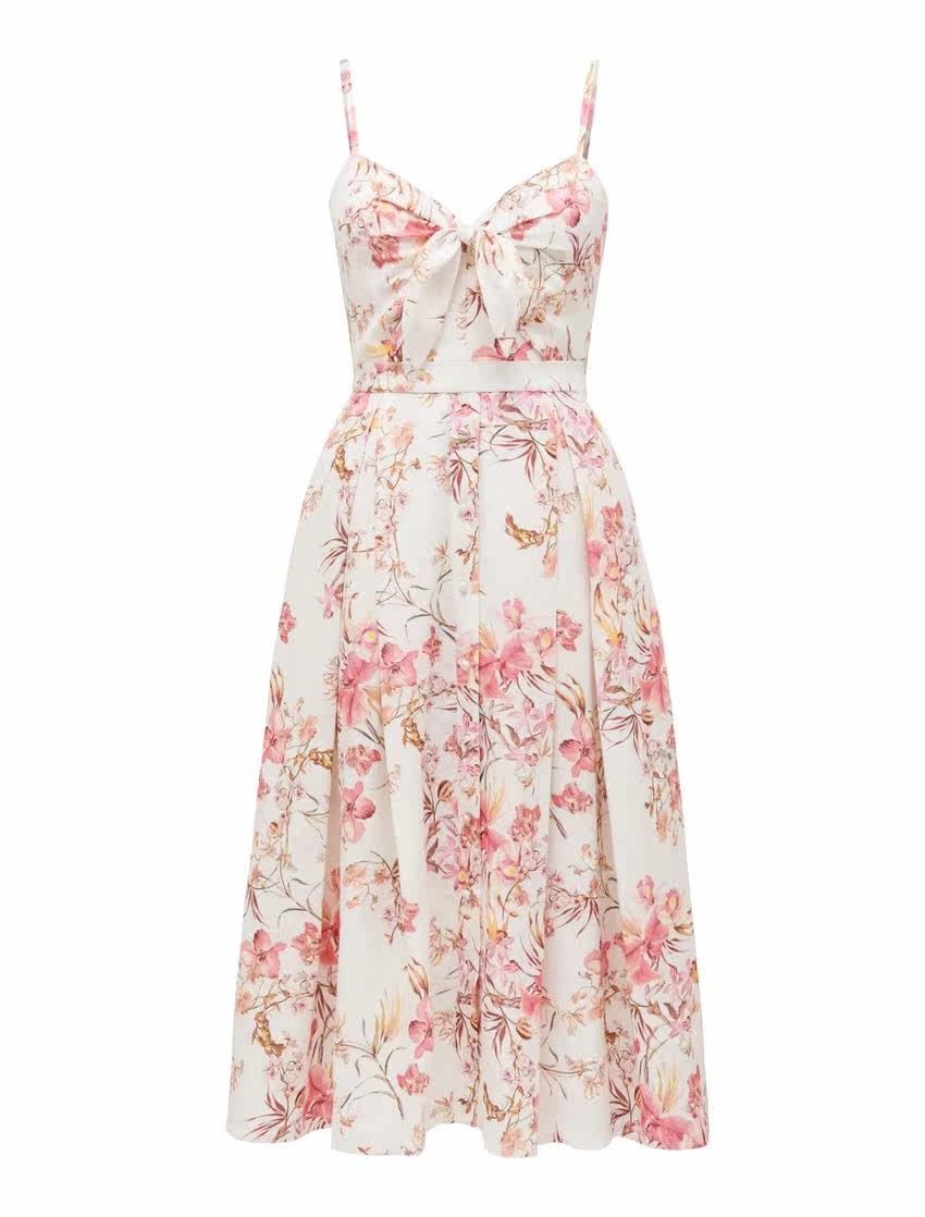 Ремень, приталенный корсет, платье, из хлопка и льна, эффект подтяжки, длина миди, в цветочек