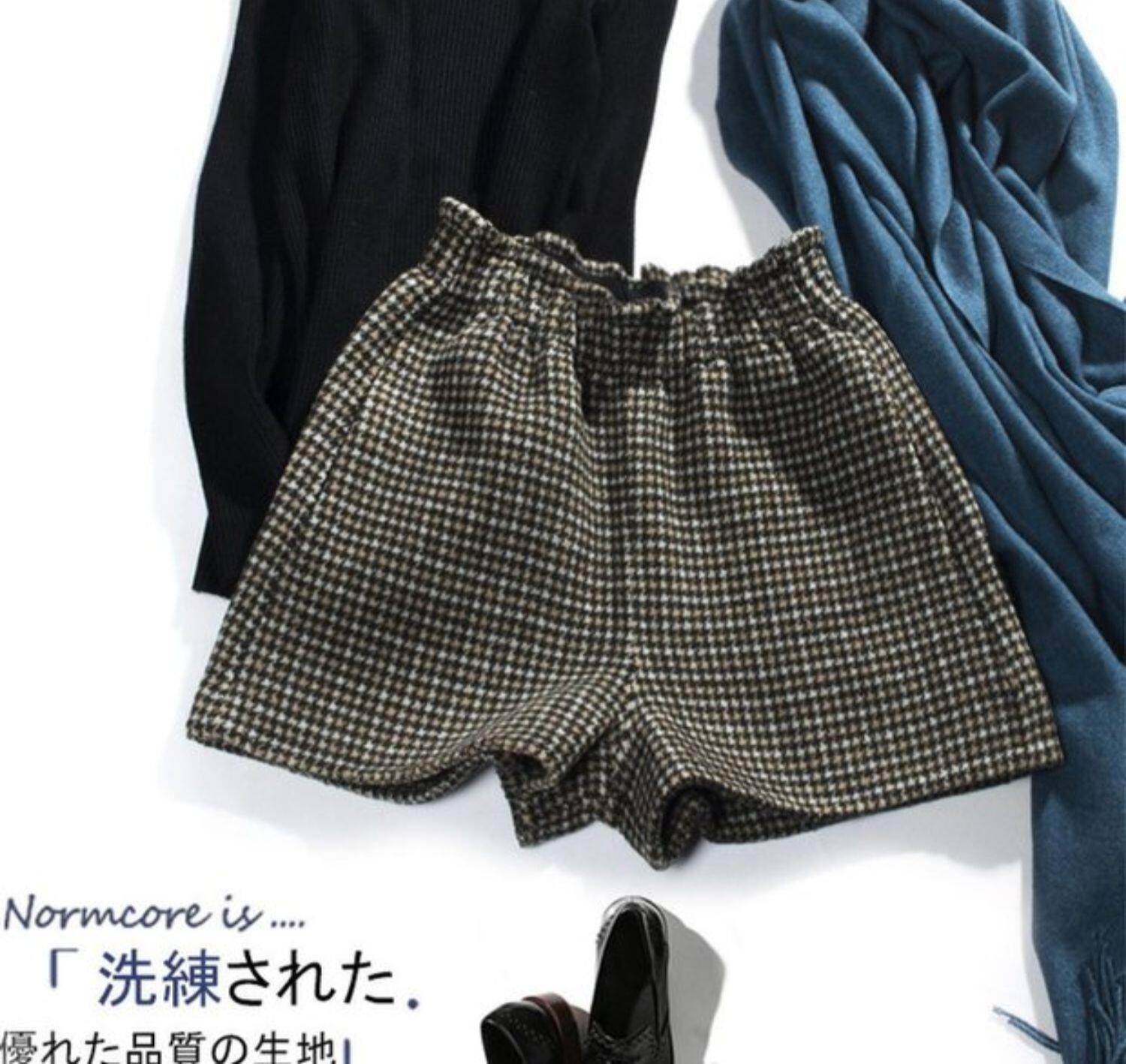 Ретро двусторонние шерстяные демисезонные шорты, леггинсы, высокая талия, оверсайз, свободный крой