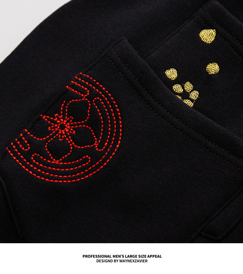Утепленные штаны, большой размер, эластичная талия, с вышивкой