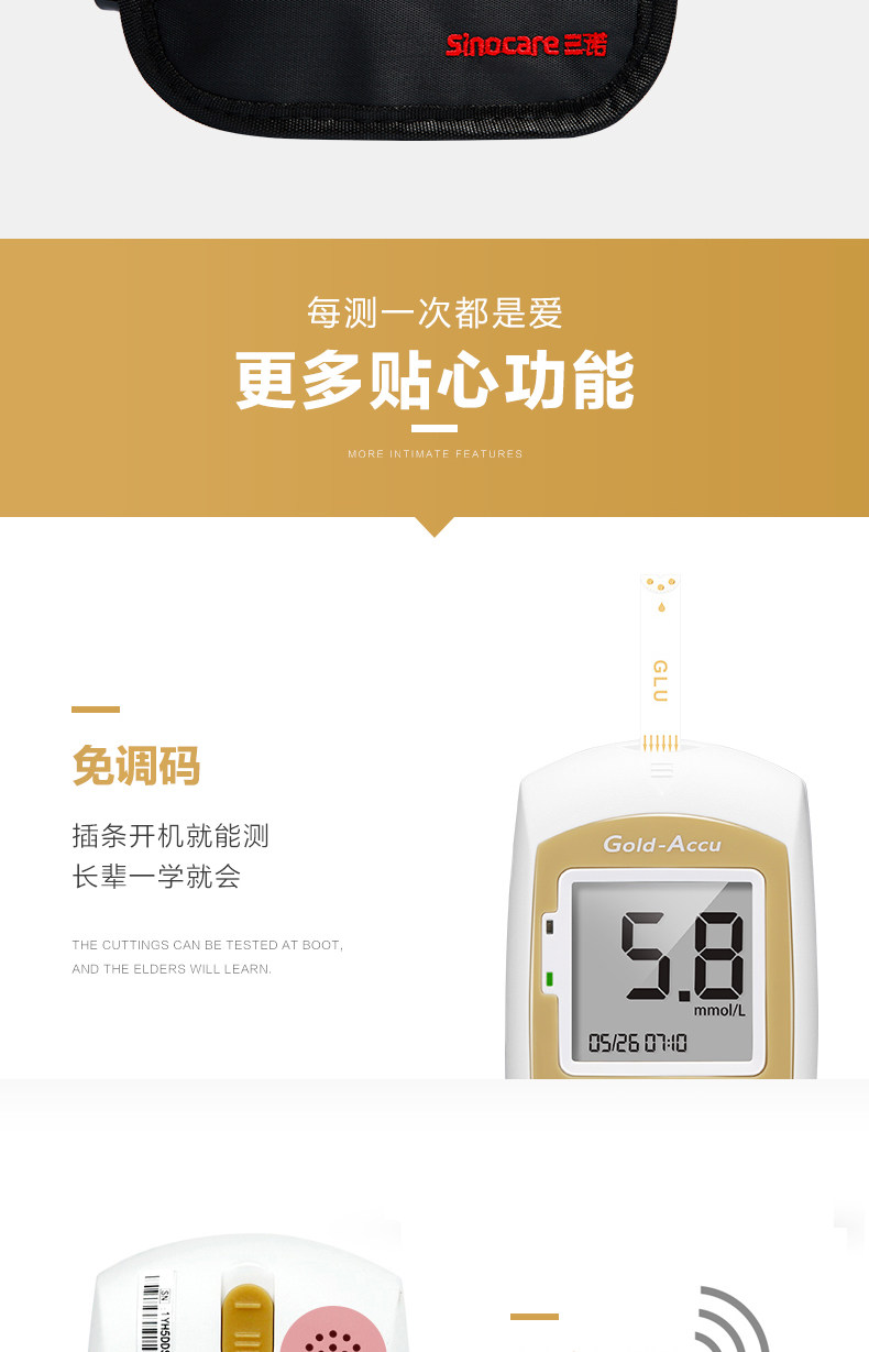 三诺 Золотая стабилизированная тест на сахар в крови Примечание 50 Таблетки беременных женщин измерены прибор для обнаружения диабета.