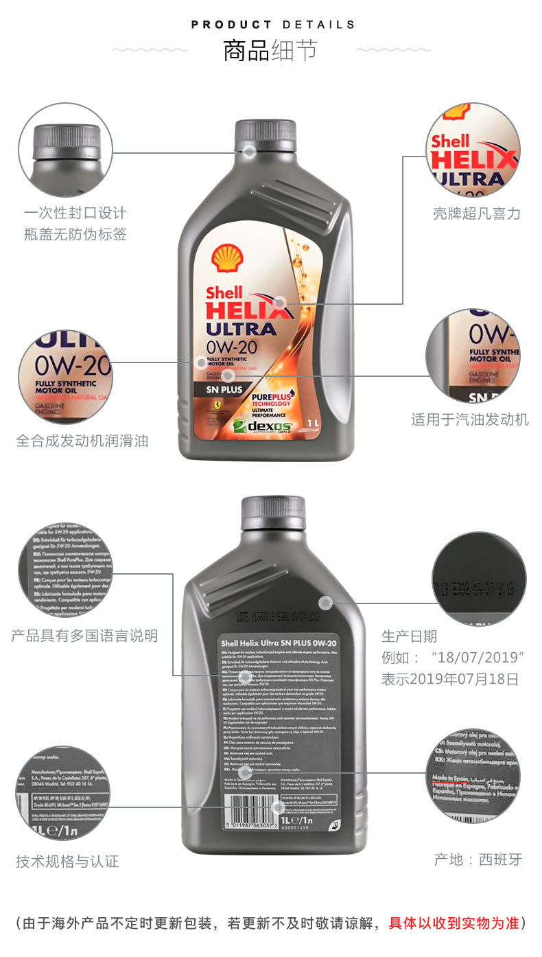 [Прямой бизнес] Shell Shell-это необычайная серая радость 0W-20 SN 1L Импортированное полное синтетическое моторное масло