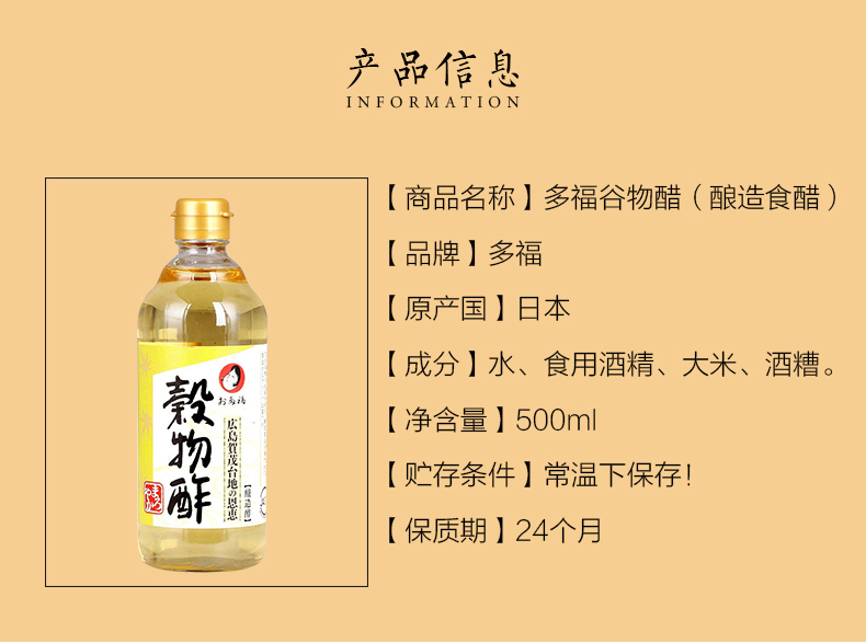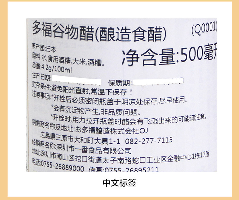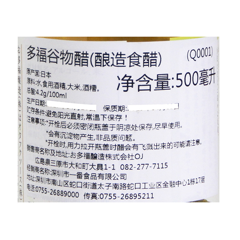 [Прямой бизнес] Япония Дуофу импортированный зерновый уксус 500 мл личинки Райс Райс Приправы и уксус.