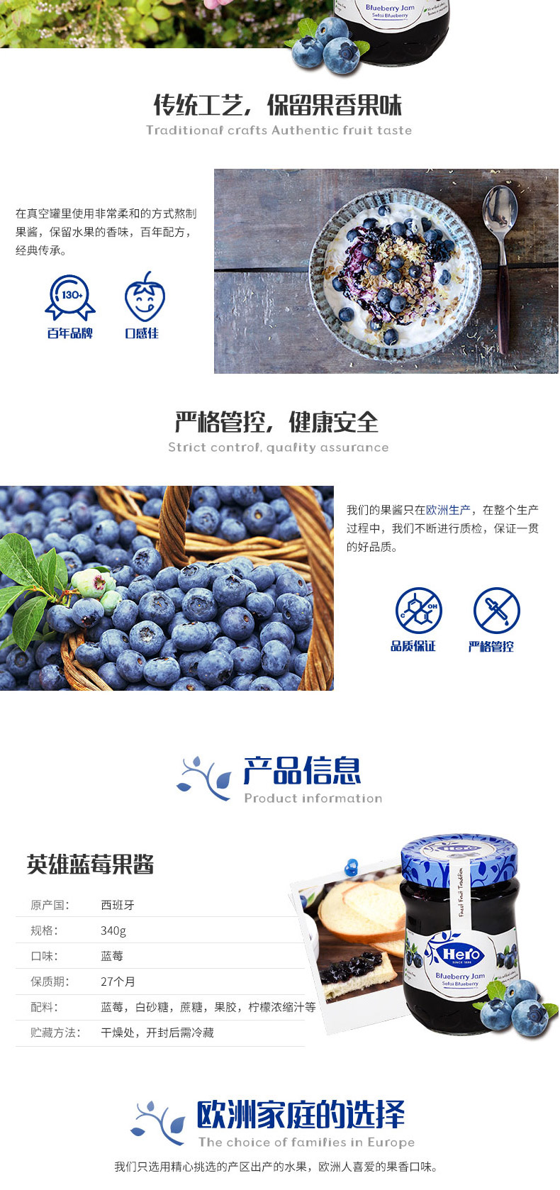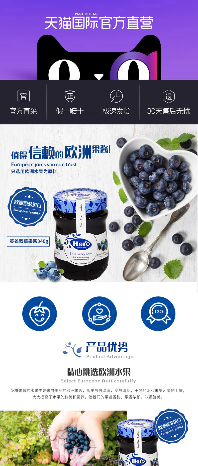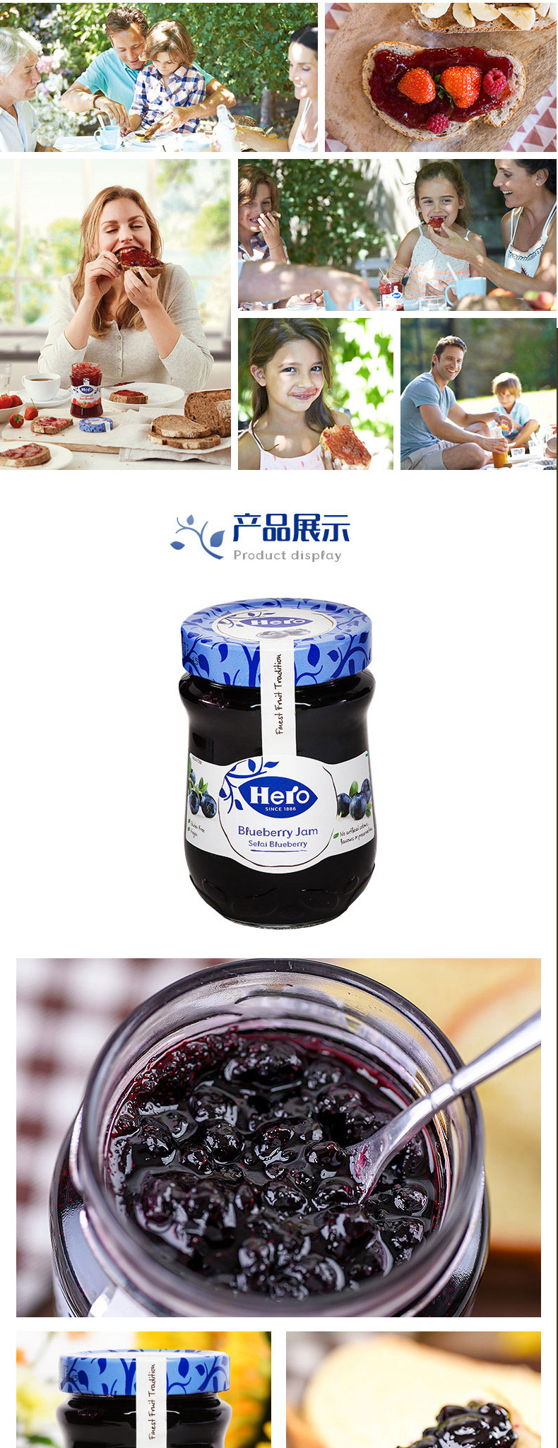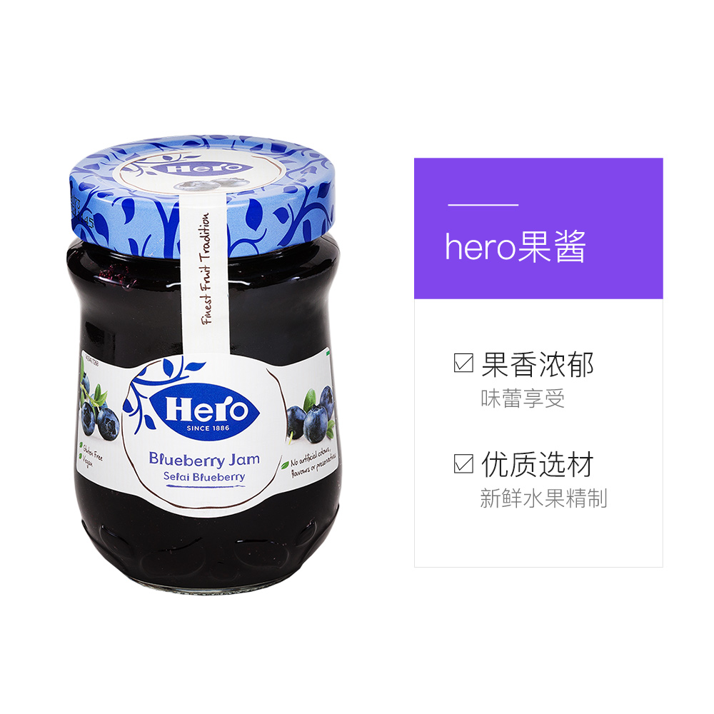 Импортированный герой герой черничный варенье фруктовые зерно мясо завтрак на завтрак йогурт бутылка бутылка бутылка 340 г черничного соуса