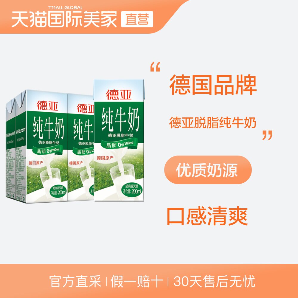 [Прямая эксплуатация] Weidundorf German Импортированное снятое чистое молоко 200 мл*6 молоко для завтрака