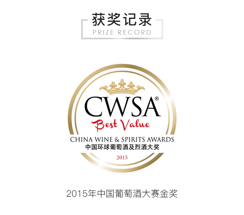 Золотая медаль в китайском винном конкурсе 2015 года. Благородная винодельня с историей двести лет. Выдержанный в дубовых бочках. Танины гармоничны, со сложным вкусом и долговечны.