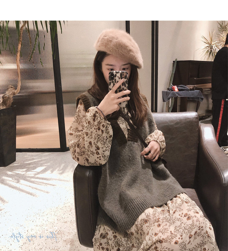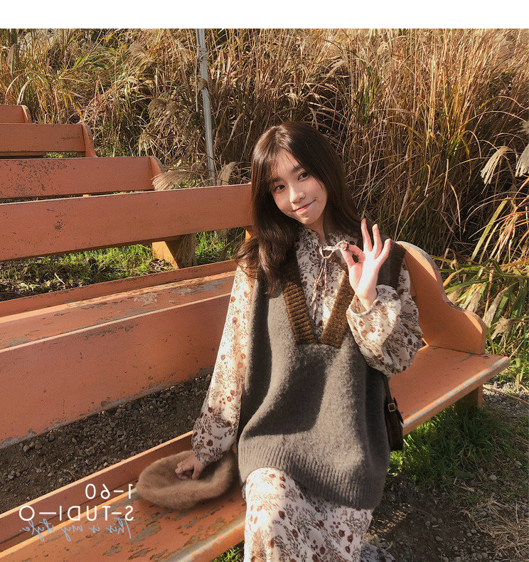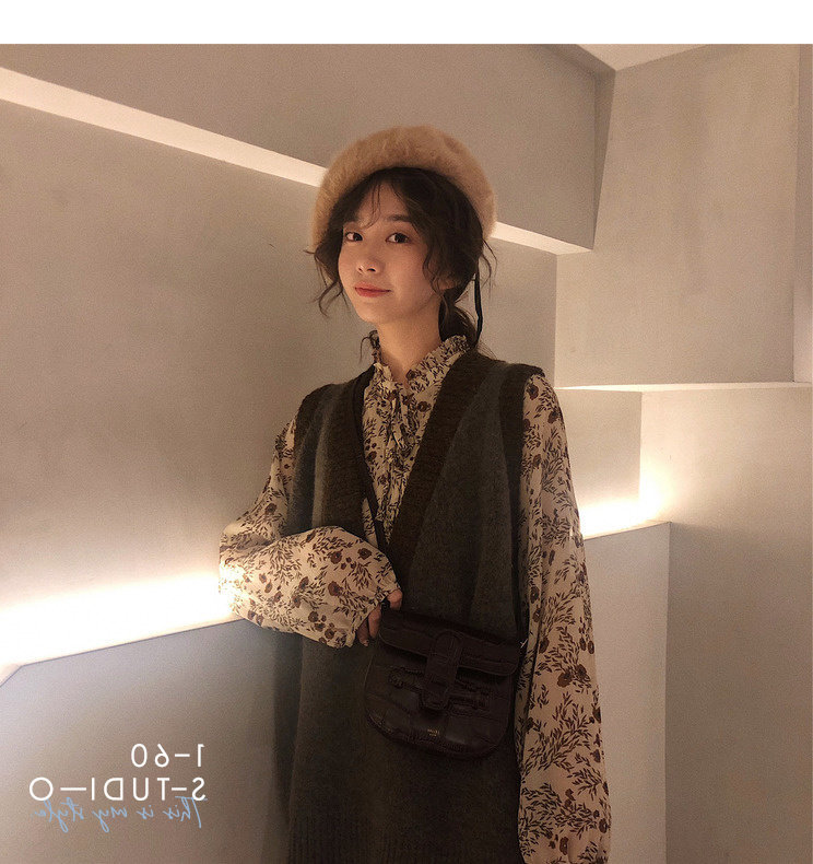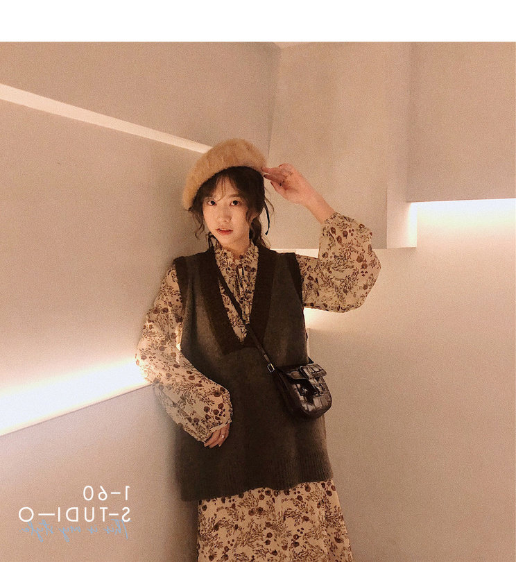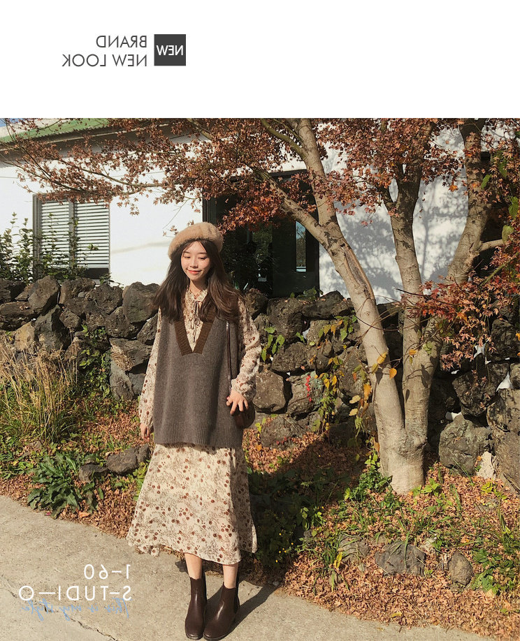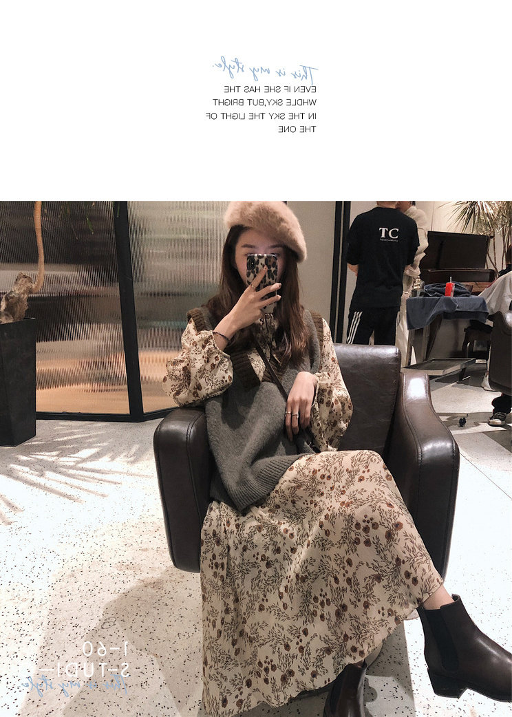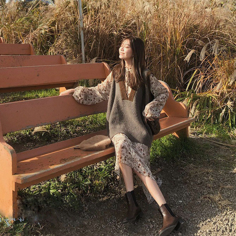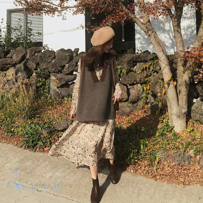 Лонгслив, осеннее платье, жилет, осенний базовый комплект, в цветочек, 2021 года