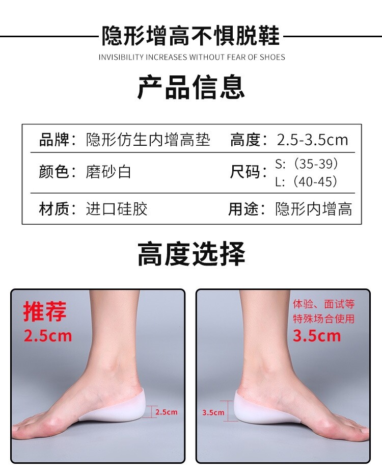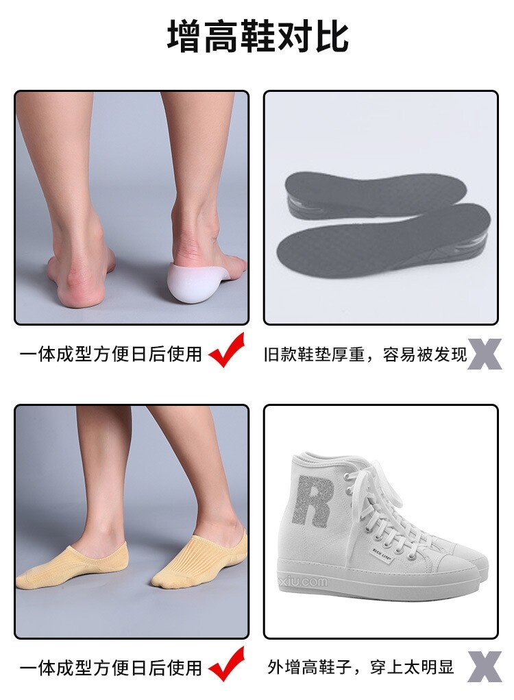 Невидимые силиконовые стельки для увеличения роста, напяточники, полустельки подходит для мужчин и женщин, носки