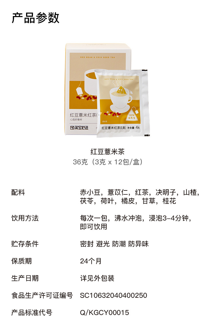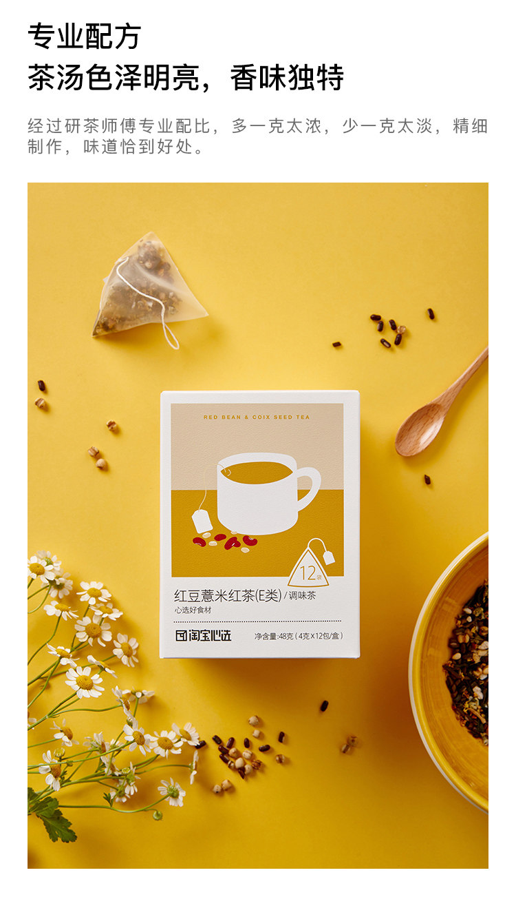 [Выбор сердца Taobao] Красный бобовый ячмень черный чай Coixen чайный треугольник чайный пакет пузырь 4G*12 упаковка