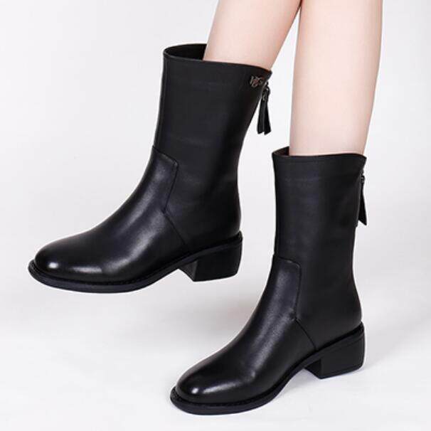 Незаметная внутренняя прибавка в росте 8 см, удобный толстый каблук, классические зеркальные полусапоги на молнии сзади, женские ботинки Martin, 7123K