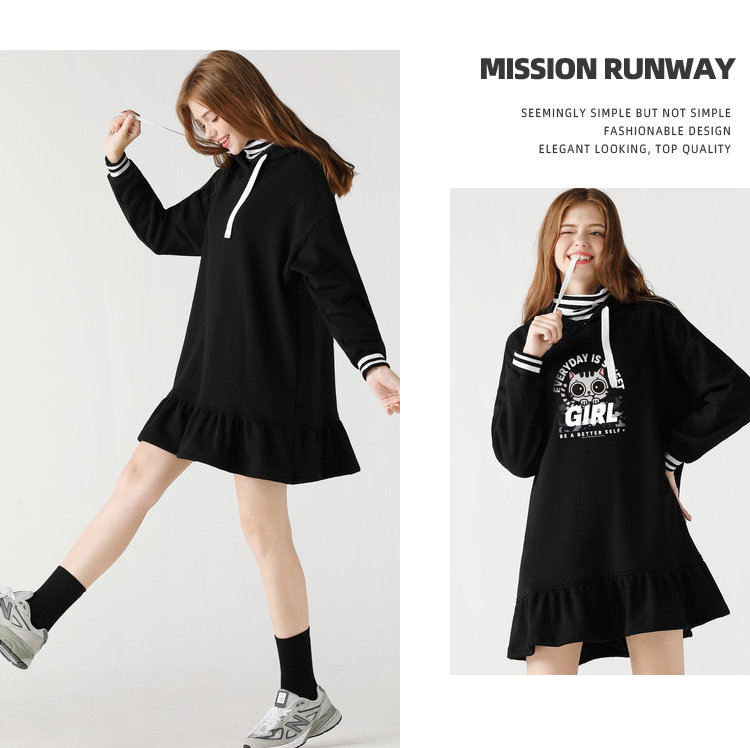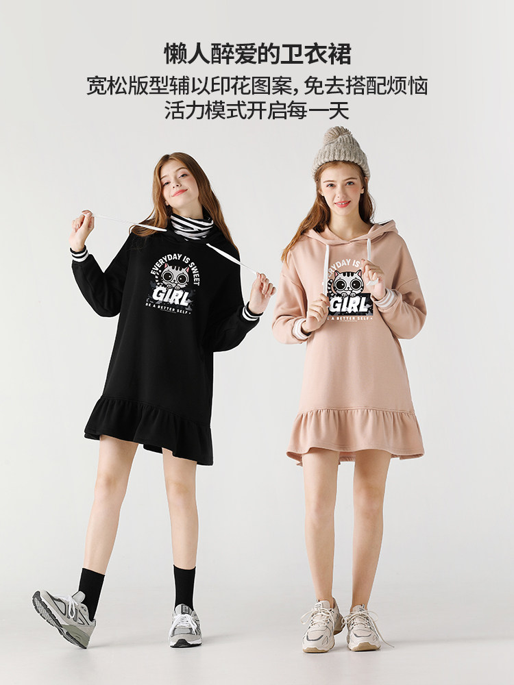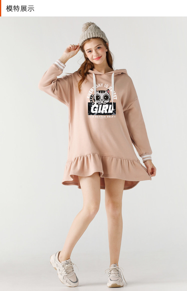 艾米恋 Мультяшная толстовка с капюшоном, зимнее платье, утепленная юбка, свободный крой, А-силуэт