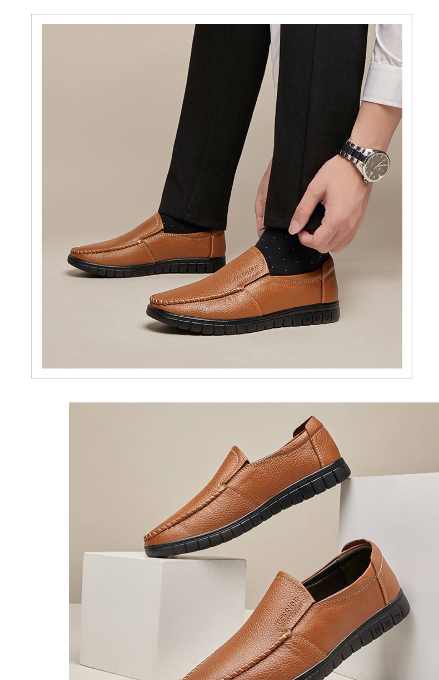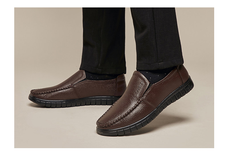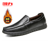 Мужские кожаные туфли с откидной спинкой, зимние мужские повседневные кожаные туфли для людей среднего возраста, плоская подошва, бархатная мягкая подошва, удобные туфли для папы.