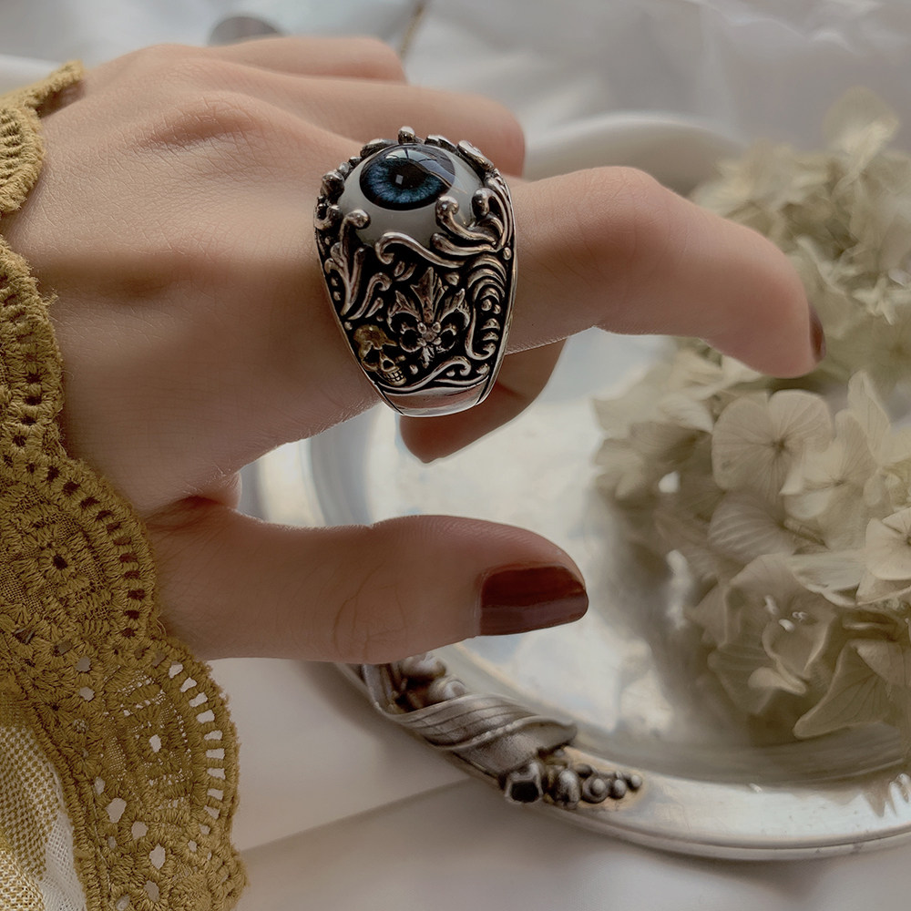 Кольцо, агатовое глазное яблоко, серебро 925 пробы, на указательный палец, мужской стиль