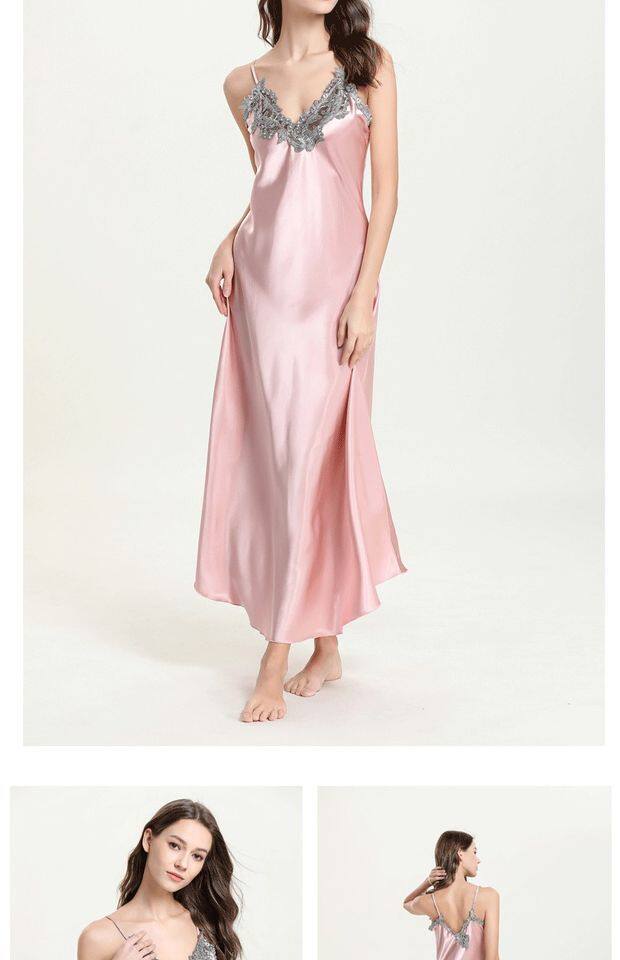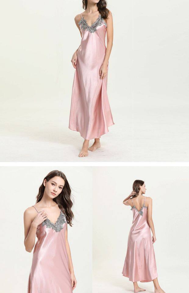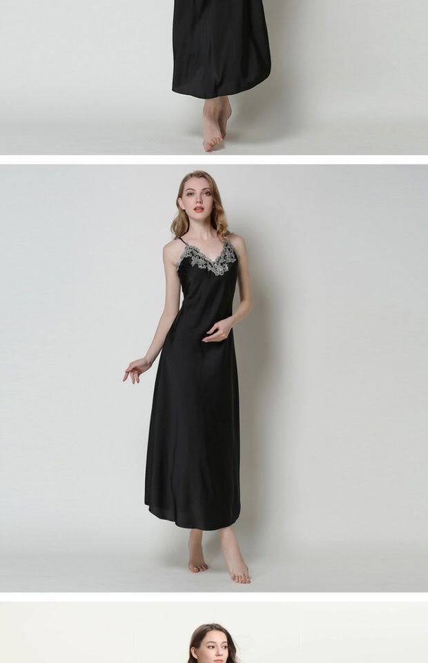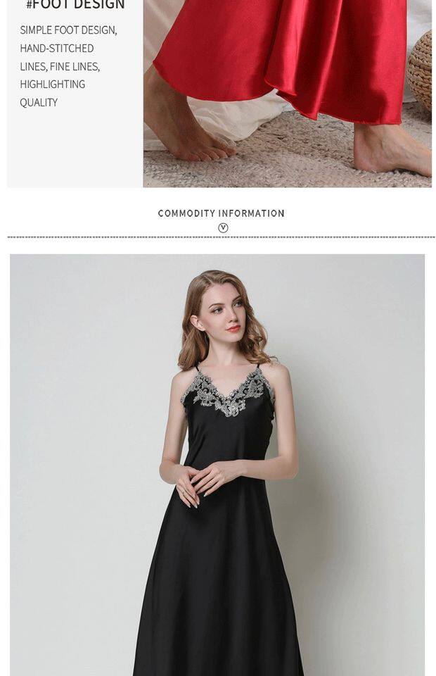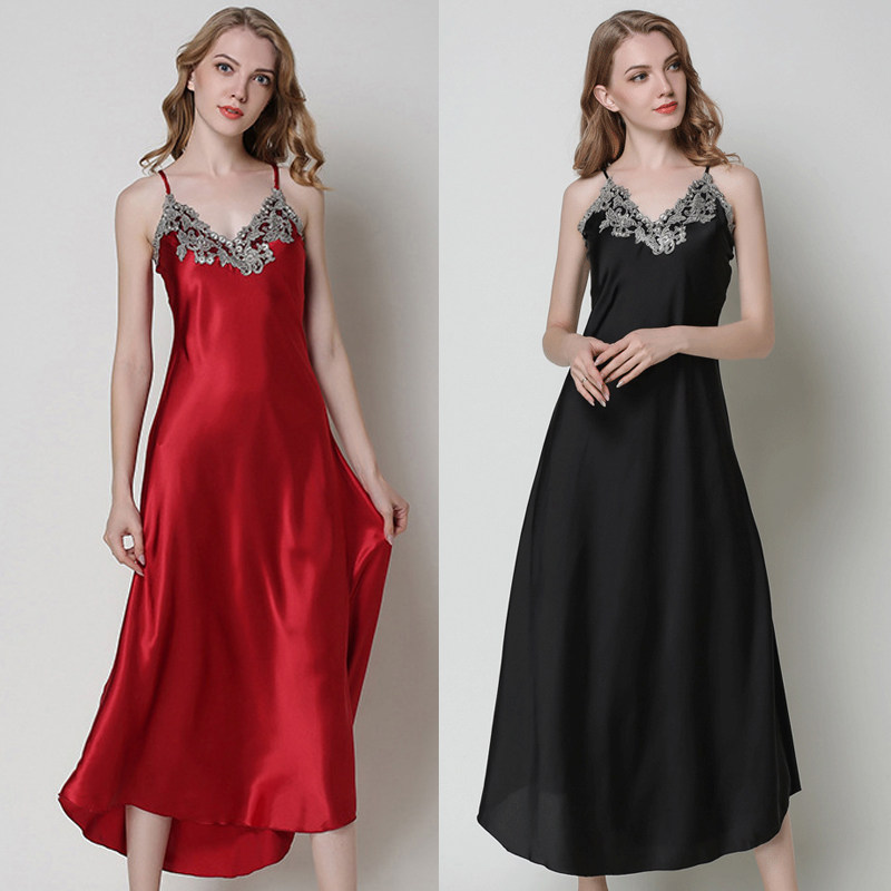 Длинное летнее шелковое кружевное платье-комбинация, сексуальная сверхдлинная длинная пижама, юбка, кружевное платье, V-образный вырез