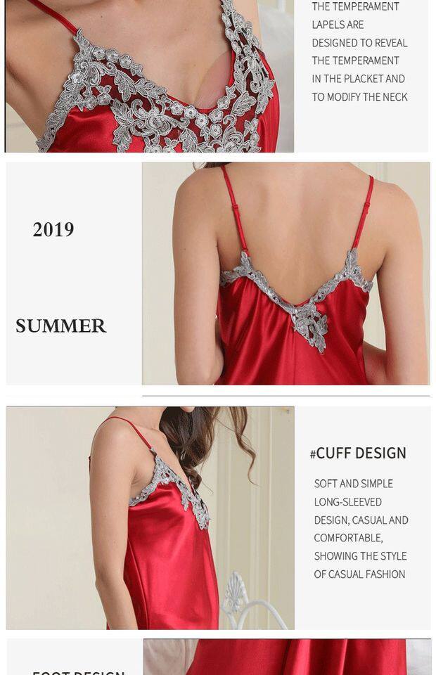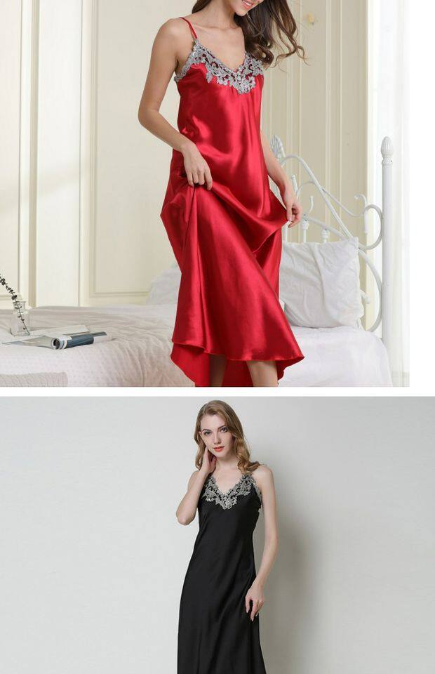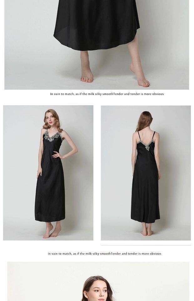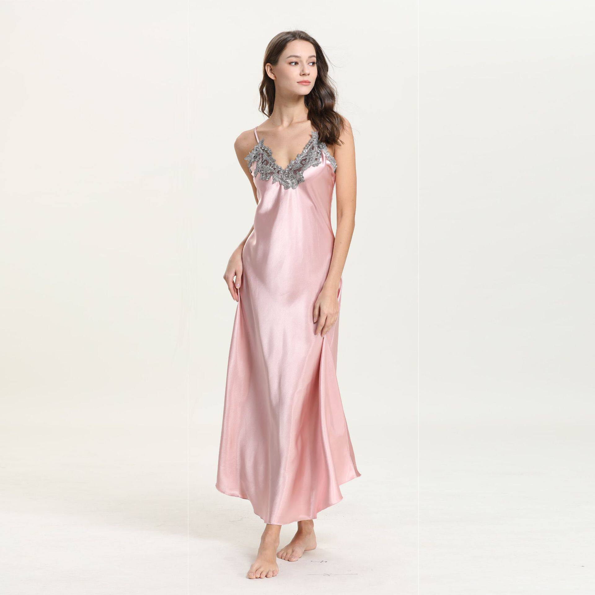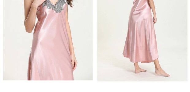 Длинное летнее шелковое кружевное платье-комбинация, сексуальная сверхдлинная длинная пижама, юбка, кружевное платье, V-образный вырез