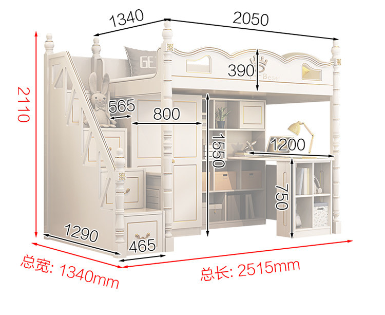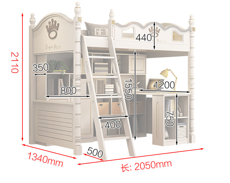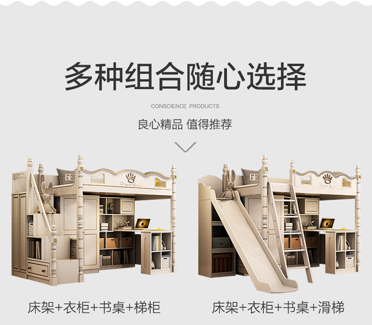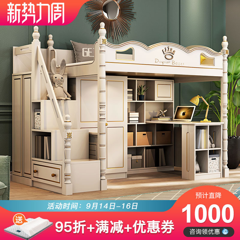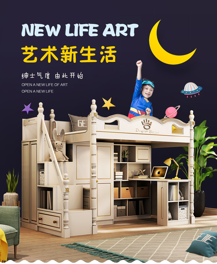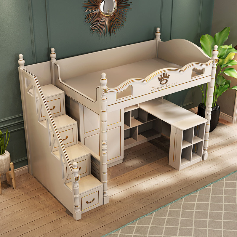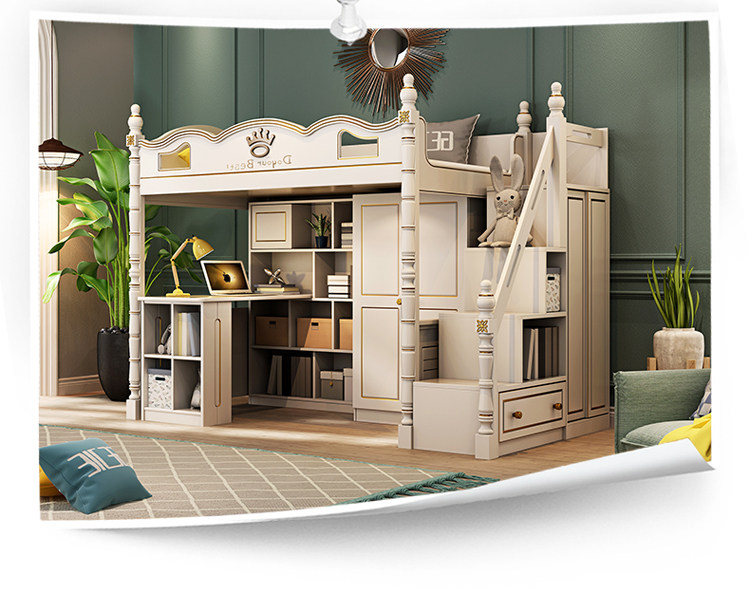 Дети ложится спать с высокой и низкой кроватью с настольным гардеробом -в