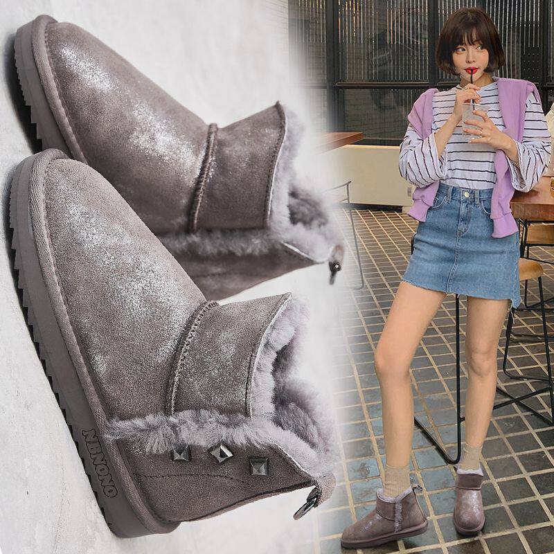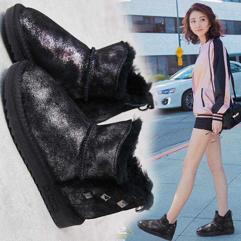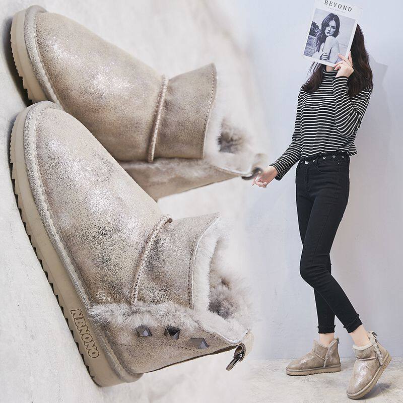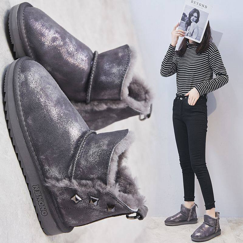 Зимние кожаные короткие сапоги, нескользящие ботинки