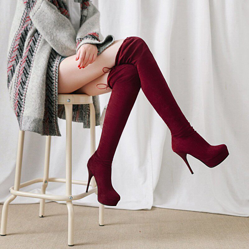 - Бордовые меховые сапоги из бутикового издания