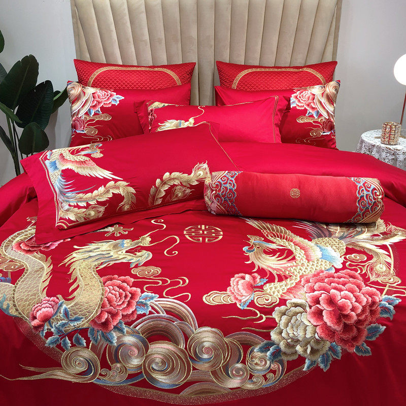 Элитный хлопковый комплект, хлопковое красное покрывало, простыня, пододеяльник, 120 шт, китайский стиль, 4 предмета