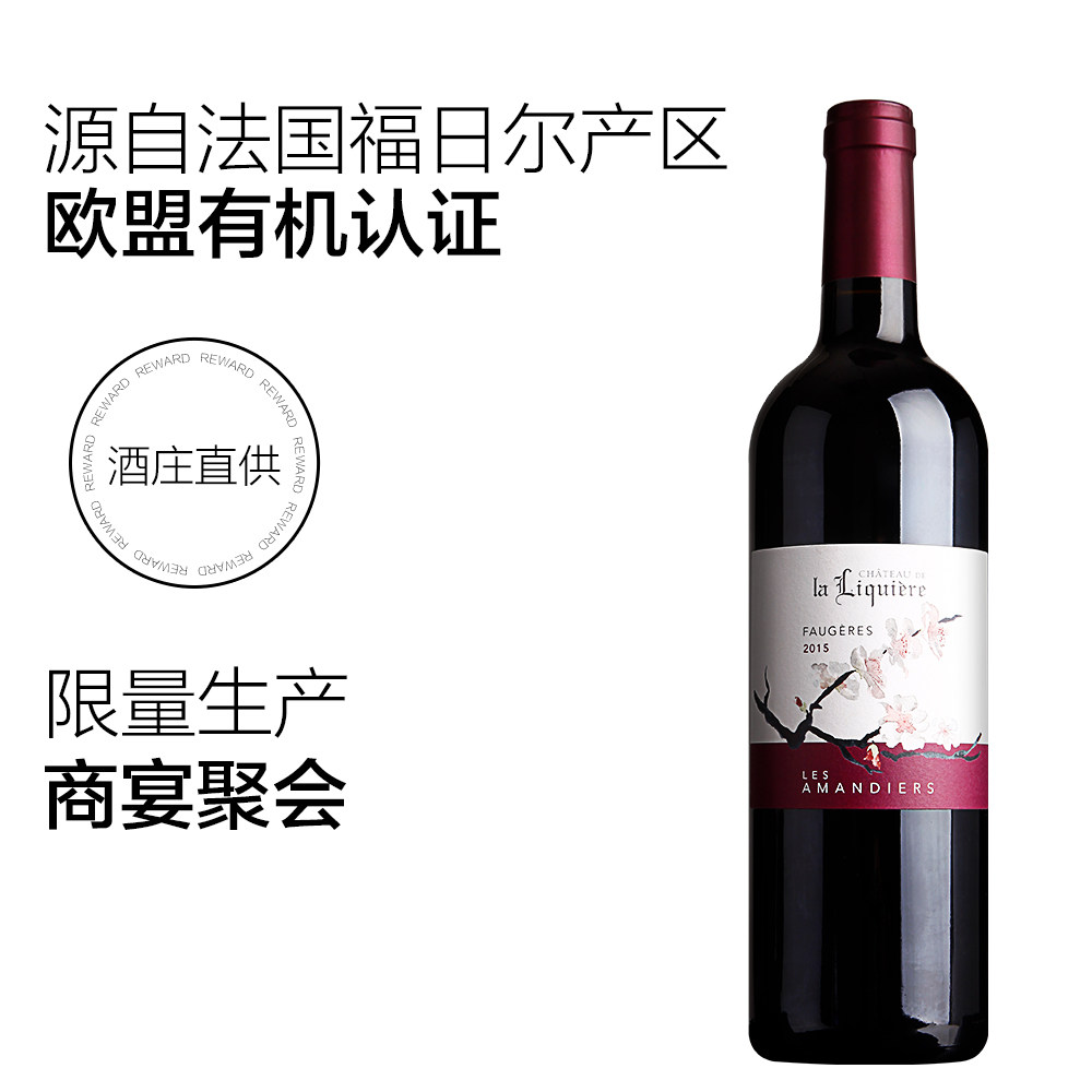 [法国France进口城堡杏树干红葡萄酒酒庄正品有机红酒西拉单支送礼]