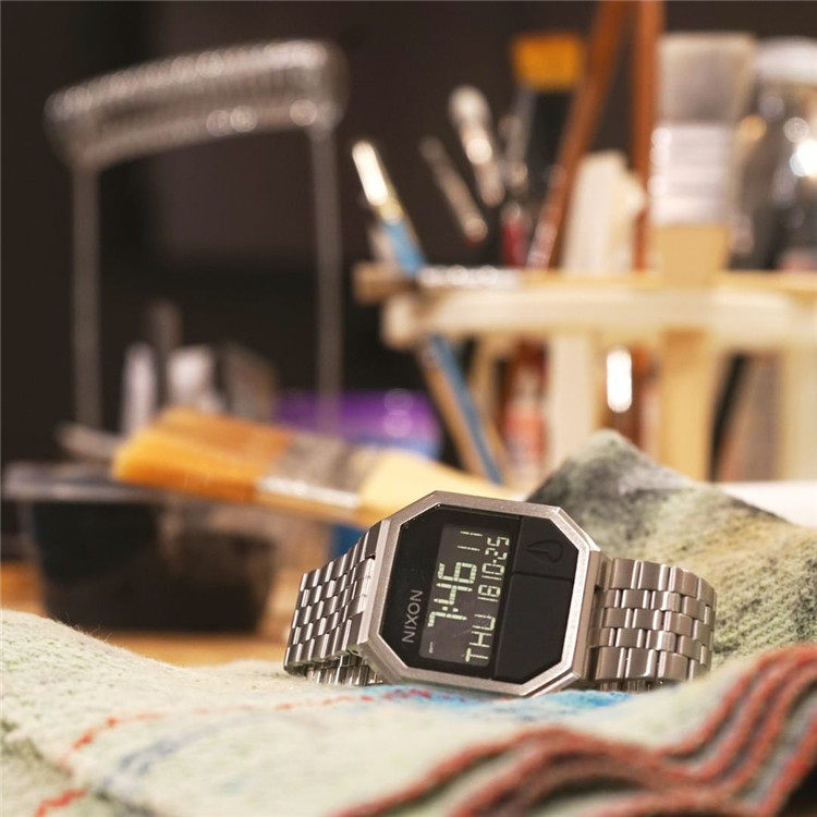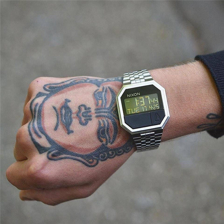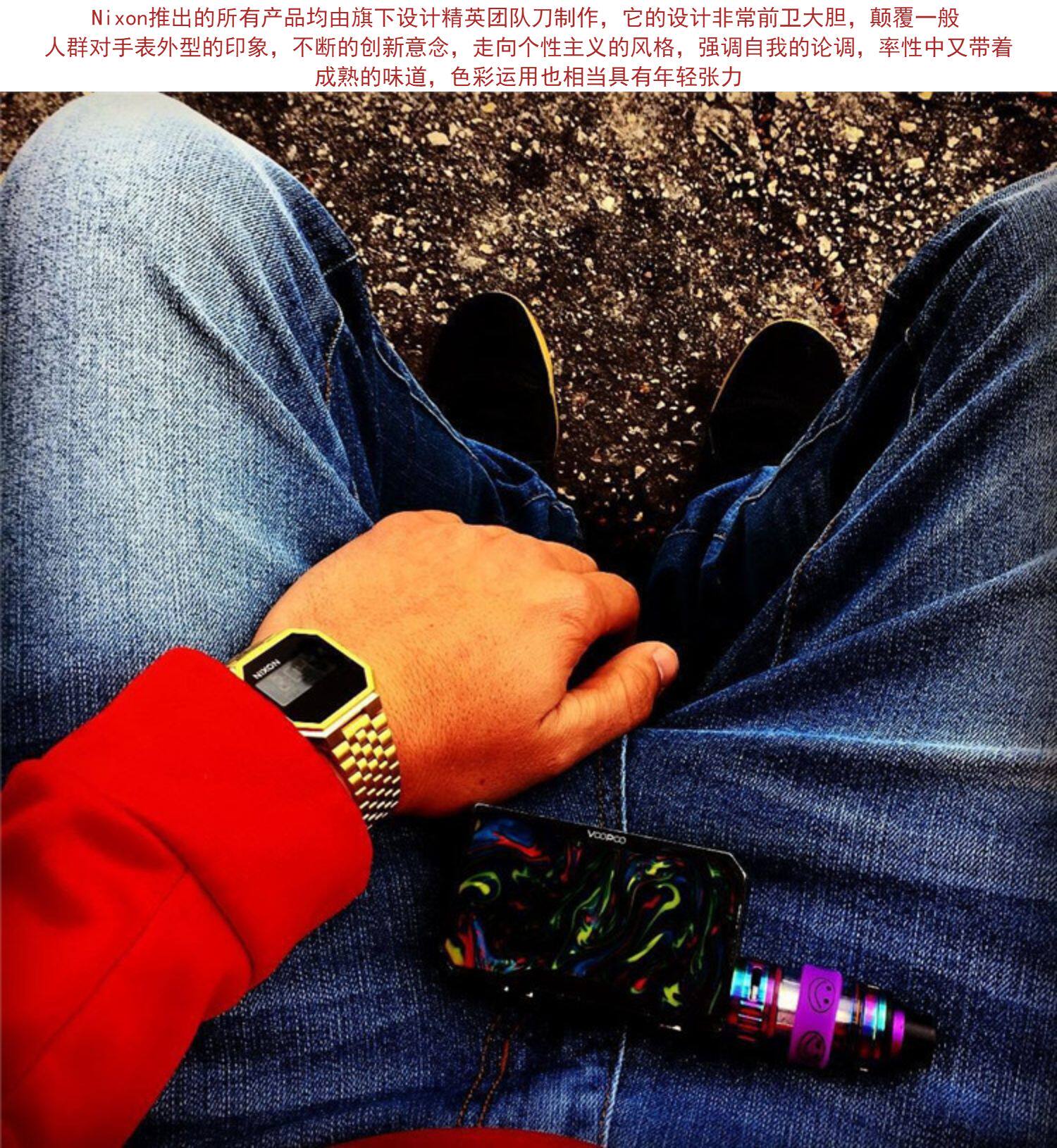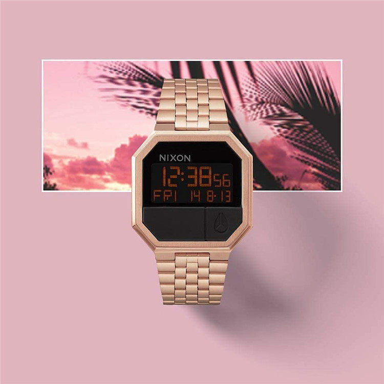 Подлинная покупка женских и мужских часов NIXON с квадратным золотым цифровым дисплеем и стальным ремнем A158502