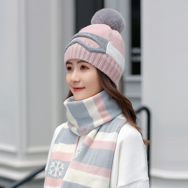 Зимняя шапка, шарф, милый удерживающий тепло шерстяной комплект, в корейском стиле, популярно в интернете