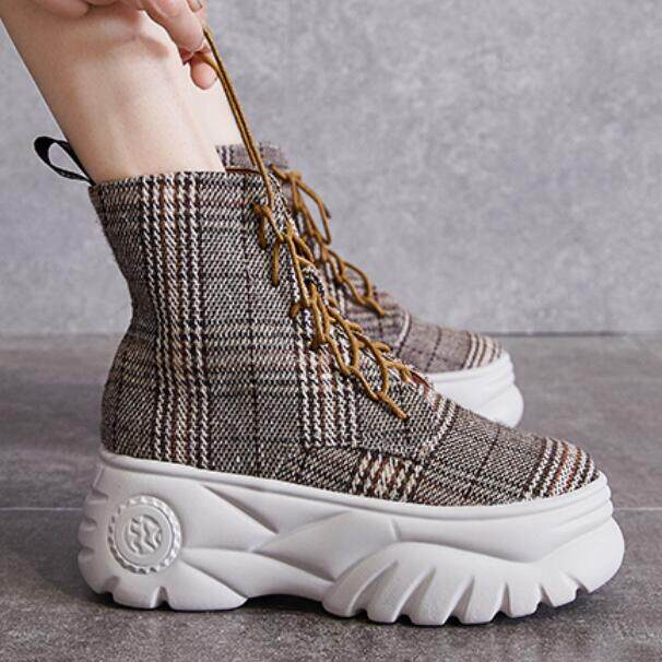 Незаметная внутренняя прибавка к росту 12 см, удобная, толстая подошва, модная клетка, универсальная и утягивающая, женские туфли Laika 7109k