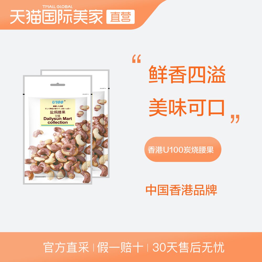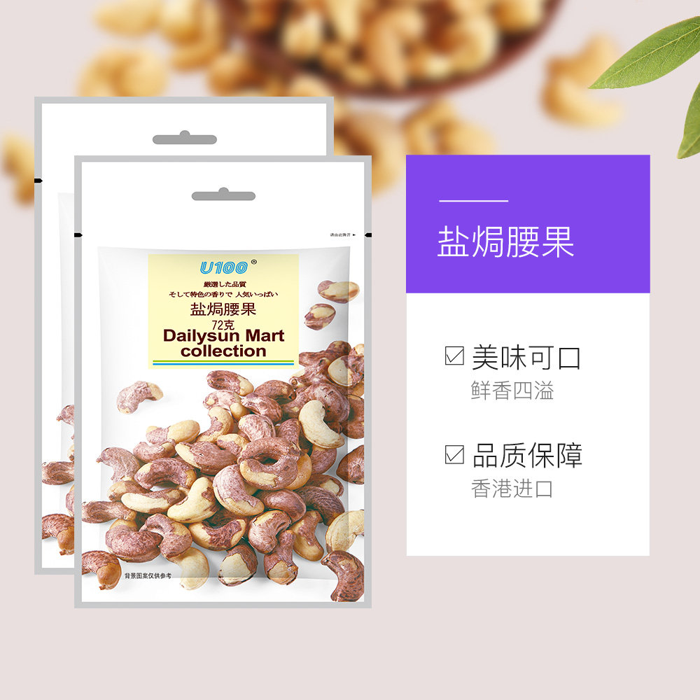 [Прямой бизнес] Гонконг, Китай, U100 с сжиганием уголя кешью, соль, 72 г*2 мешки для орехов и закусок