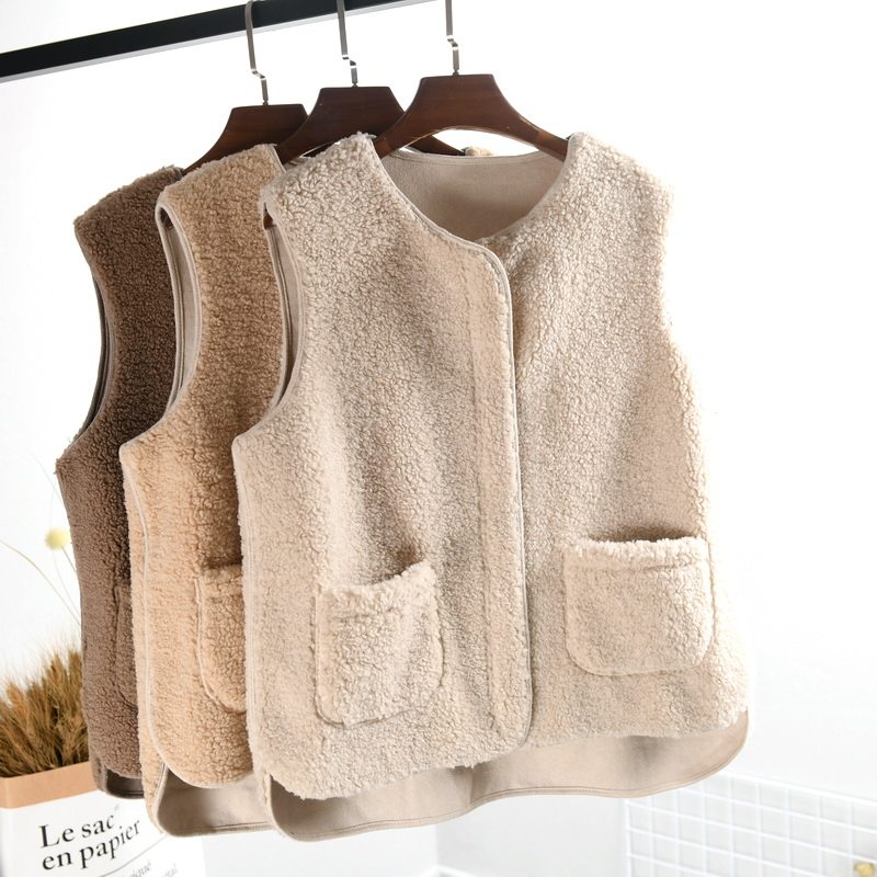 Кофейный зимний короткий жилет, бархатная модная куртка, оверсайз