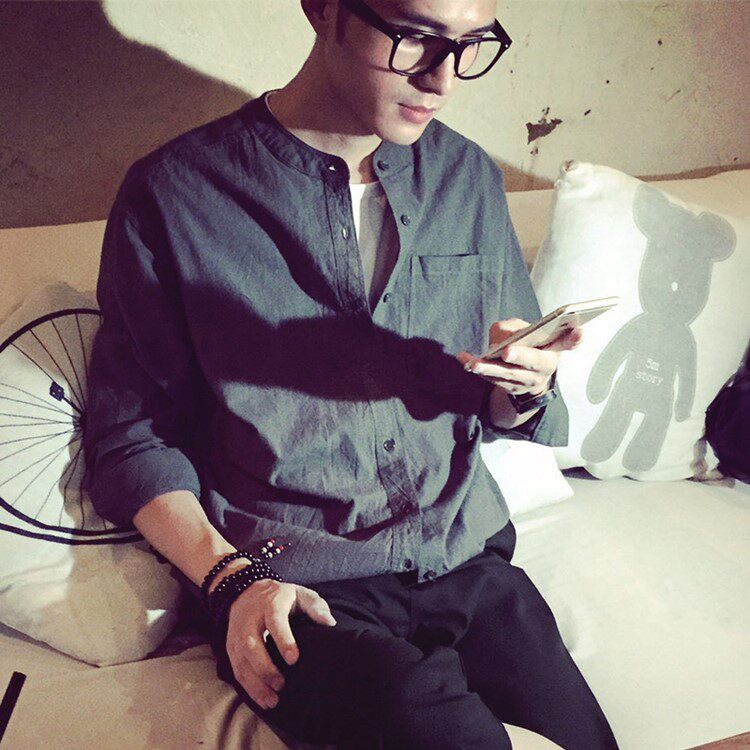 Осенняя японская ретро рубашка с круглым воротником, лонгслив, в корейском стиле, из хлопка и льна, свободный крой