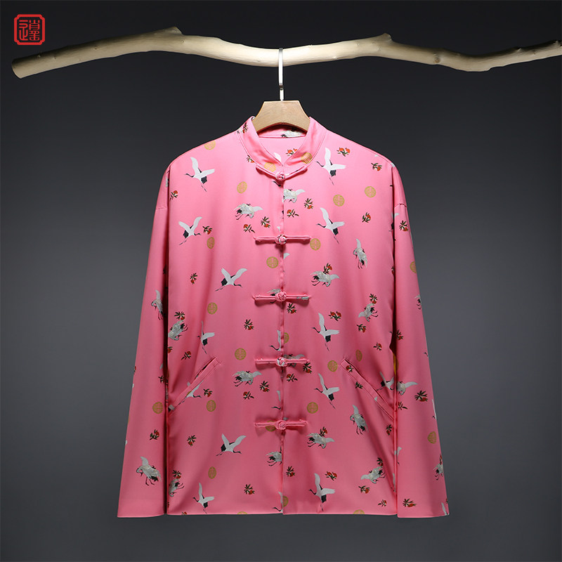 Костюм Тан, мужской модный весенний стиль, воротник-стойка, дисковая пряжка, свободная куртка в китайском стиле, куртка с принтом крана, ретро-топ, мужская одежда в китайском стиле
