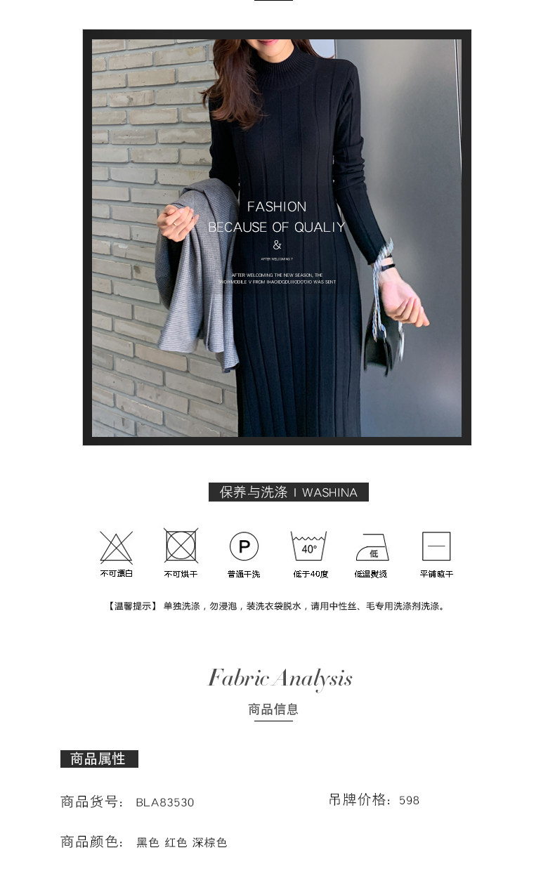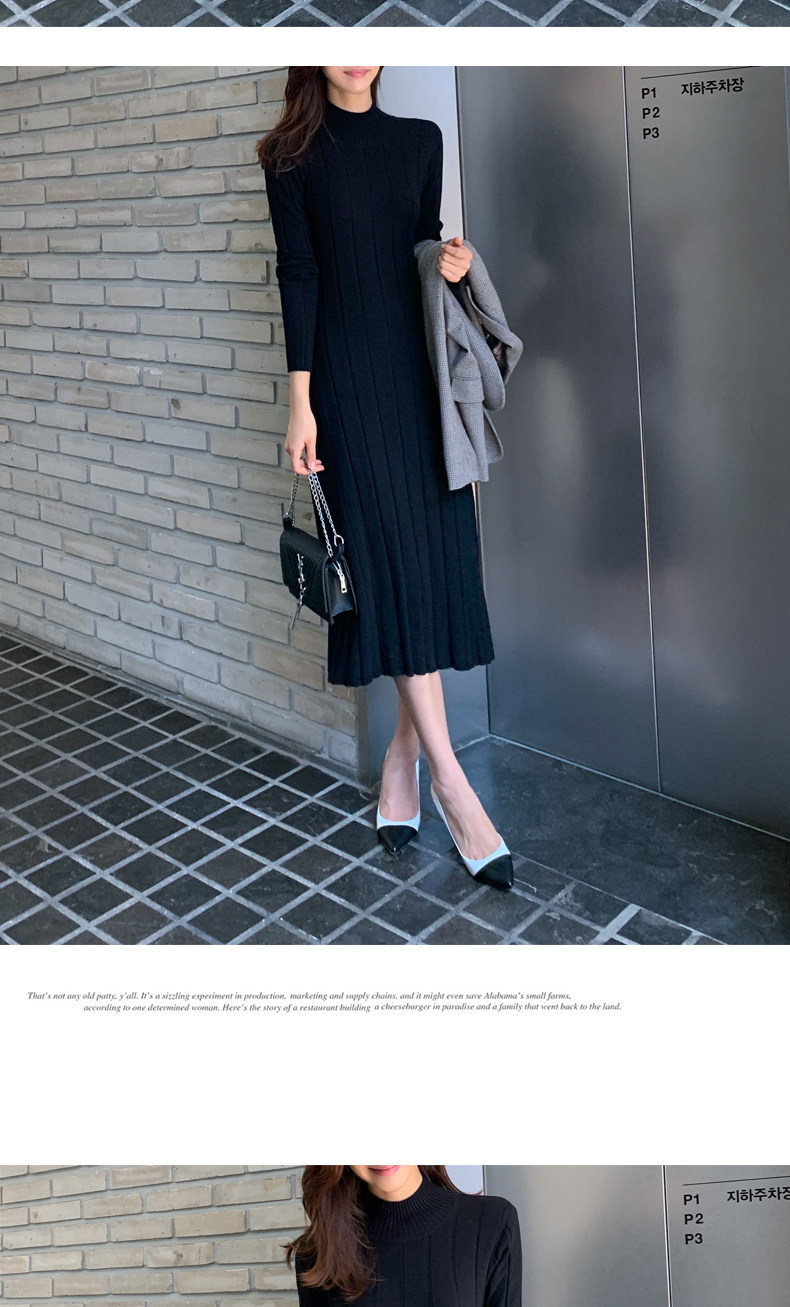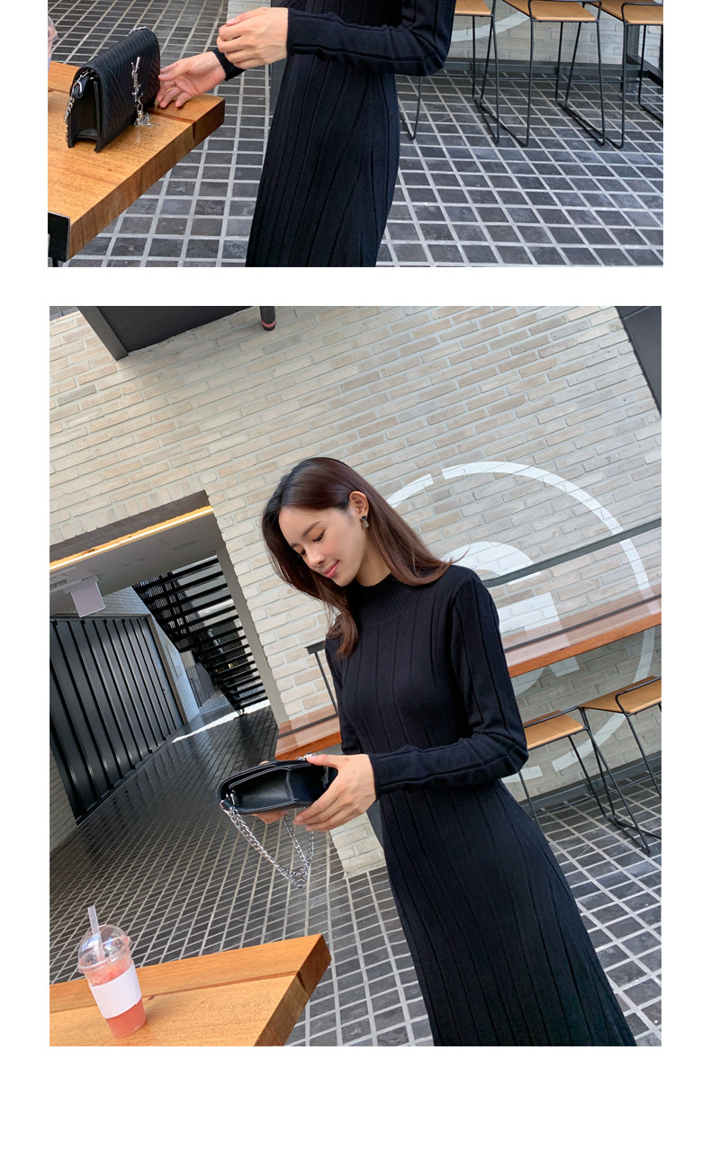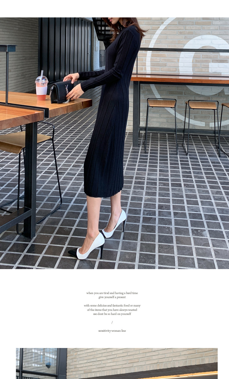 百洛安 Базовый свитер, зимняя длинная юбка, приталенное трикотажное платье, высокий воротник, в корейском стиле
