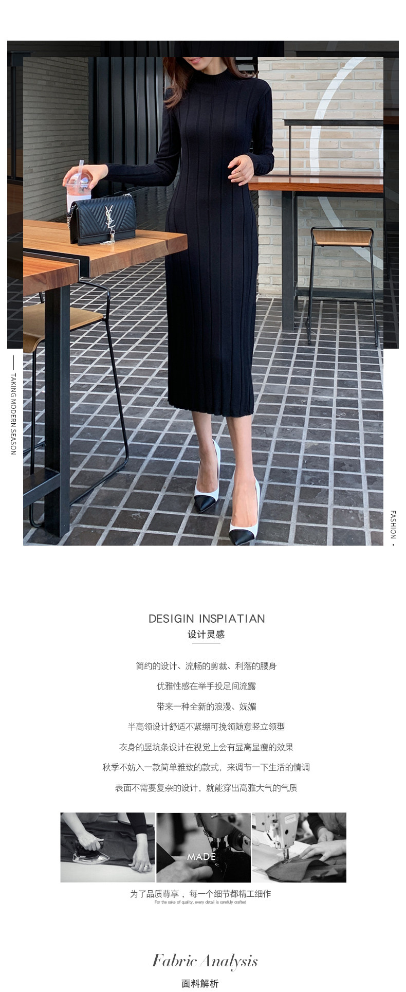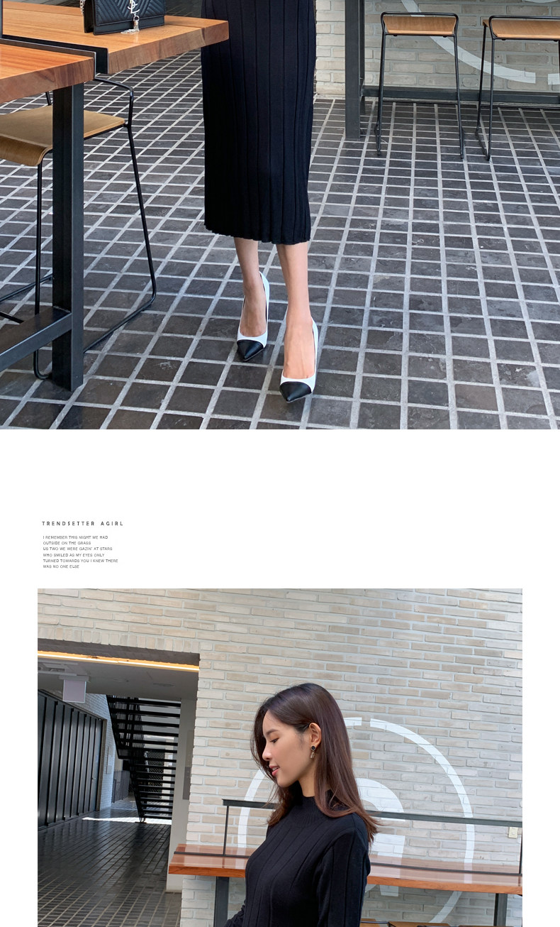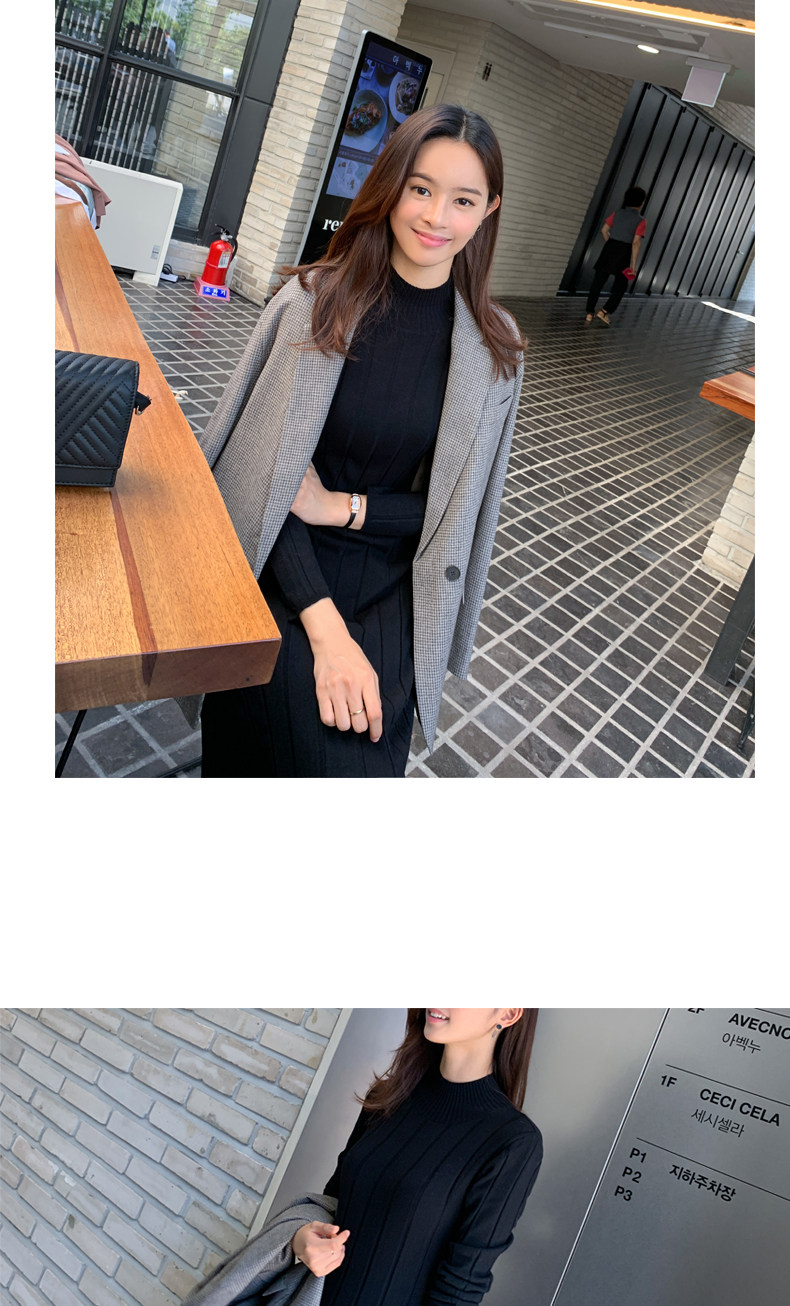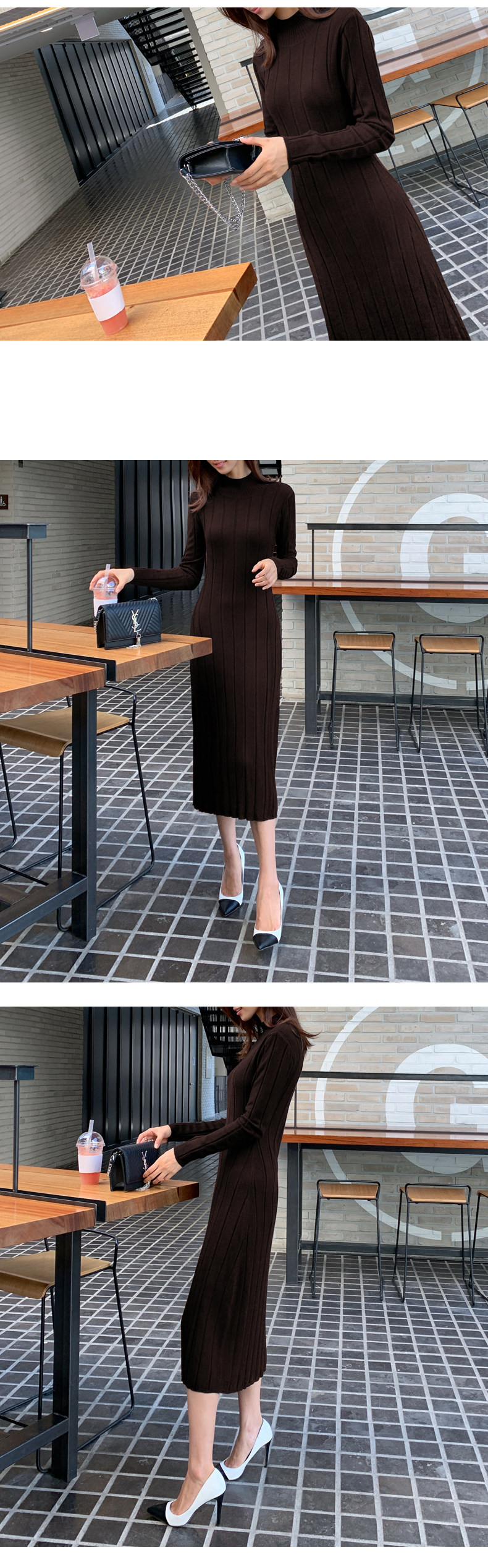 百洛安 Базовый свитер, зимняя длинная юбка, приталенное трикотажное платье, высокий воротник, в корейском стиле