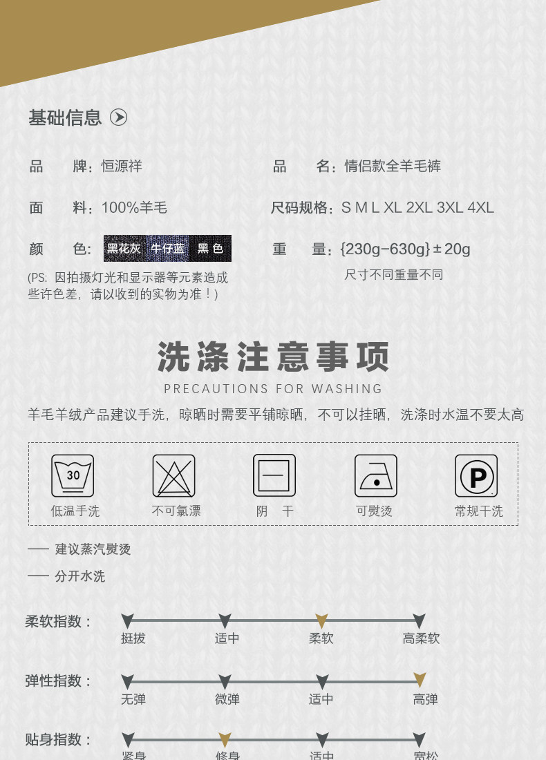 恒源祥 Шерстяные демисезонные удерживающие тепло штаны, средняя посадка