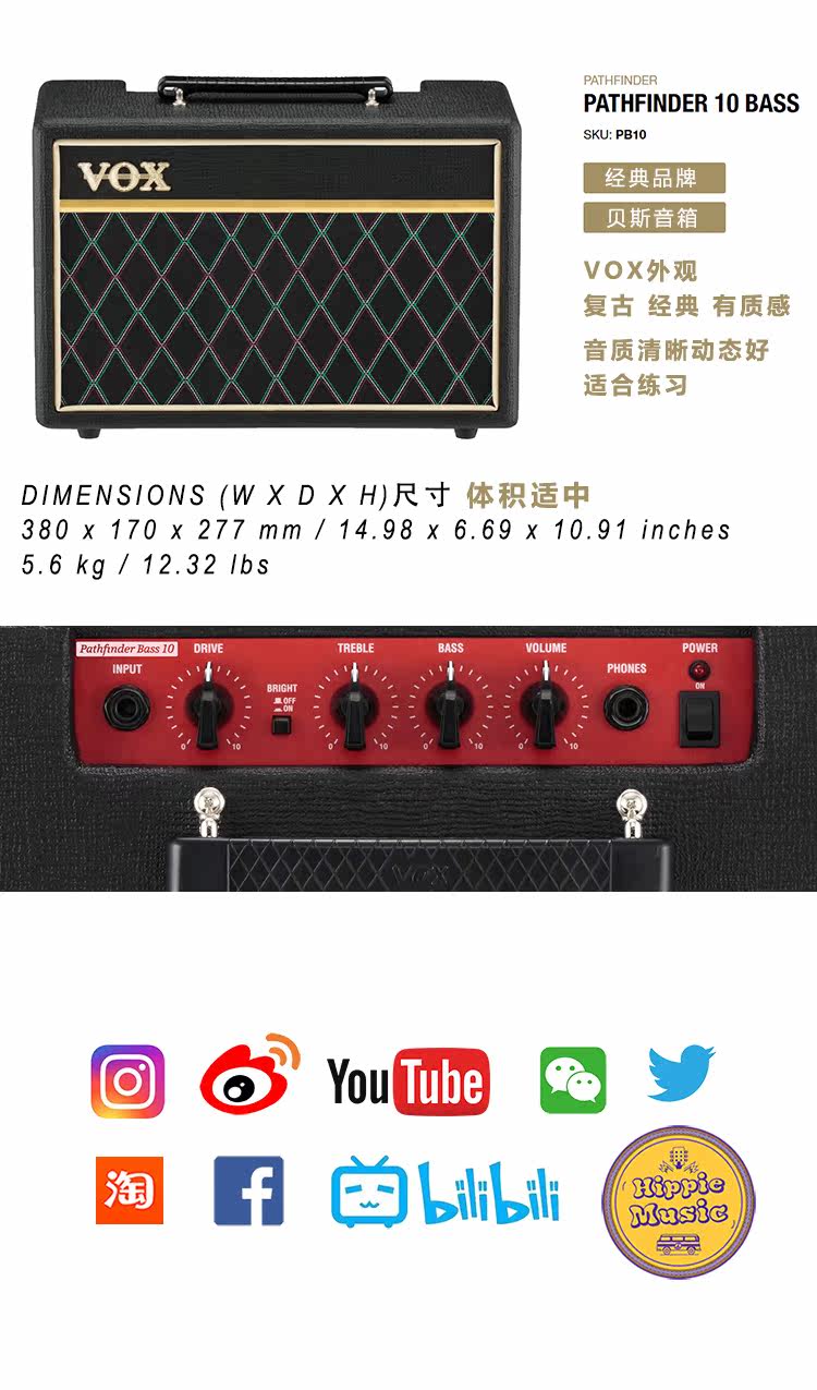 Хиппи музыка Шанхайский физический магазин Vox Bass Discoering Pathfinder Bass 10 Small Amp