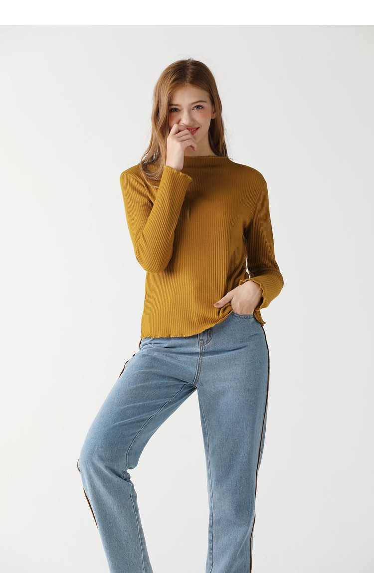 艾米恋 Белая цветная футболка, осенний цветной базовый приятный телу лонгслив, высокий воротник, осенняя, свободный крой