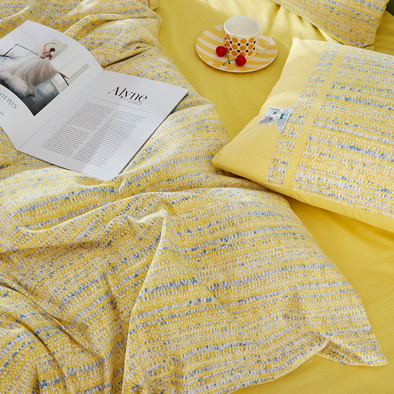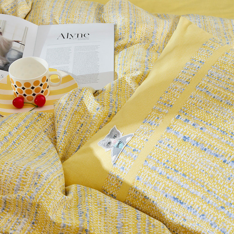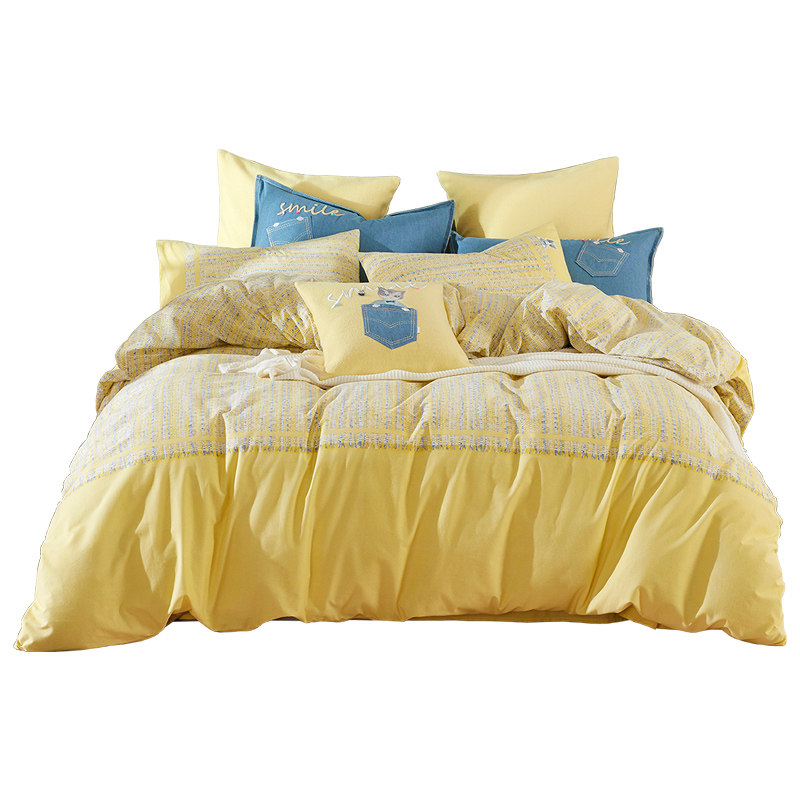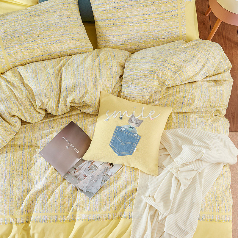 Хлопковый пододеяльник, утепленный демисезонный желтый комплект, в стиле Шанель, 4 предмета