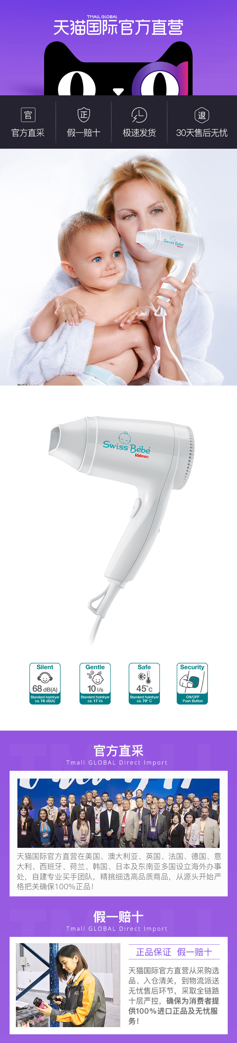 [Прямая эксплуатация] Valera/Velinno Swiss Original Импортируемый низкий уровень шума и низкий уровень радиации детские волосы фен